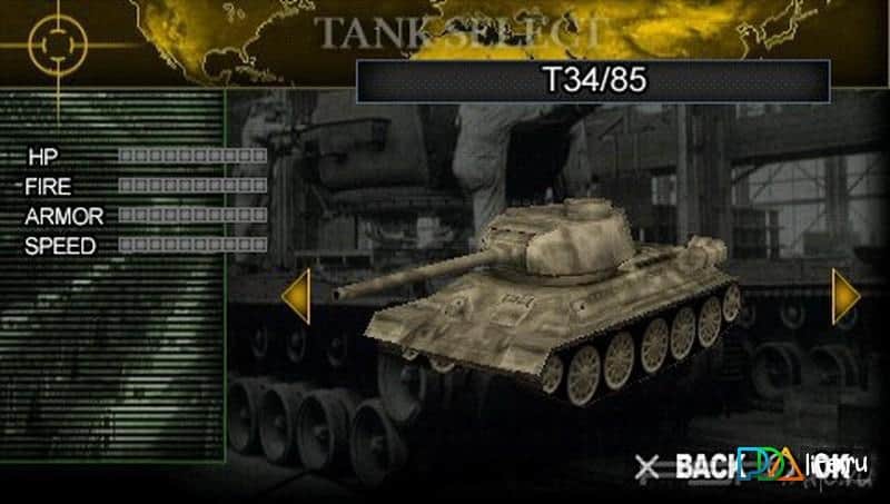 El Sensha – tirador para PSP donde aceptas tu parte en batallas de tanques desde la Segunda Guerra Mundial. Toma control del famoso tanque T-34 y conduce por todas las ubicaciones del juego, destruyendo los tanques de los rivales. Los tanques de estos modelos se diferenciaban de los tanques oponentes por su agilidad y gran velocidad, nota estas propiedades del tanque y ataca a los tanques blindados oponentes de varias toneladas, destruyéndolos de un solo disparo. Participa en las batallas legendarias de esta guerra y cambia el rumbo de los acontecimientos. Mueve tu tanque por terrenos difíciles y busca refugio mientras disparas al enemigo desde él.