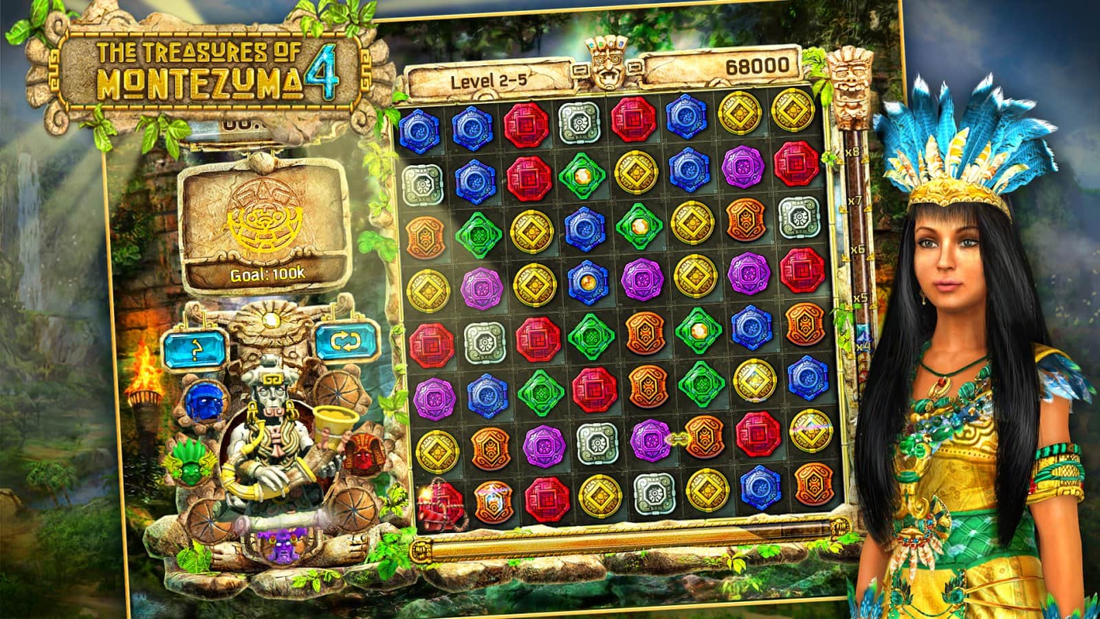 Los Tesoros de Moctezuma 4 (Moctezuma 4) – la continuación del conocido juego casual del estudio de juegos «Alawar». Al igual que las partes anteriores, el juego pertenece al género de «tres en raya», es decir, necesitas reunir tres o más elementos en una línea para que desaparezcan del campo de juego. El juego cuenta la historia de Anna, que día tras día ve en sus sueños la misma imagen. En un lugar pintoresco se ha establecido la capital de los aztecas, y su emperador, de alguna manera, se ha convertido en un rehén del tiempo. Vamos con Anna a enfrentar antiguos enigmas y riquezas incalculables.