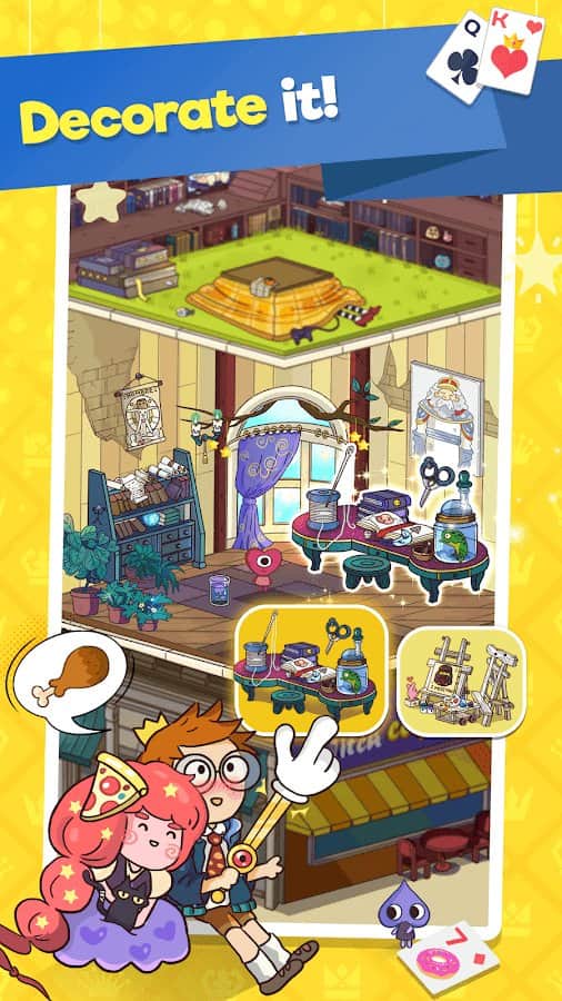 Theme Solitaire - TriPeaks Tower – un gran juego de solitario para Android que combina un juego "Tripeaks" con un sistema único de construcción de la torre Theme Tower. Juega a este juego y disfruta del fascinante proceso de jugar al solitario, jugando cartas, recolectando recursos y construyendo una torre única. En este juego te encontrarás nuevamente con fantásticos héroes de la virginidad: Blancanieves, Pinocho, Peter Pan y muchos otros. Construye la torre y elige un interior único, haciendo que cada habitación sea única. Juega a mini-juegos adicionales que no te dejarán aburrido donde recolectarás objetos coleccionables.