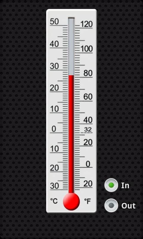 Termómetro, el termómetro moderno, que no solo determinará la temperatura con precisión, sino que también la traducirá de una manera más conveniente para usted. De hecho, este es un termómetro ordinario, solo que no funcionará para medir la temperatura del cuerpo, ya que utiliza todas las funciones posibles de un teléfono inteligente para obtener información sobre el entorno. Para una predicción más precisa, necesita dejar su teléfono inteligente en un lugar y no tocarlo durante unos momentos.