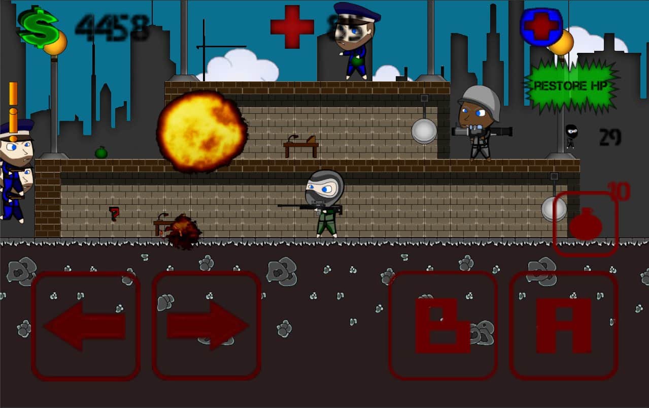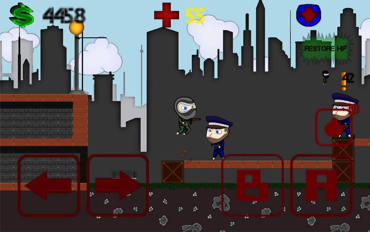Thief Life - un gran juego de plataformas 2D para dispositivos Android. En el juego jugarás como este gánster que intenta escapar de la policía. Los primeros niveles son bastante simples y puedes avanzar solo un par de minutos, pero con cada nivel la dificultad del juego aumenta y en los niveles posteriores no podrás llegar a la fuga.