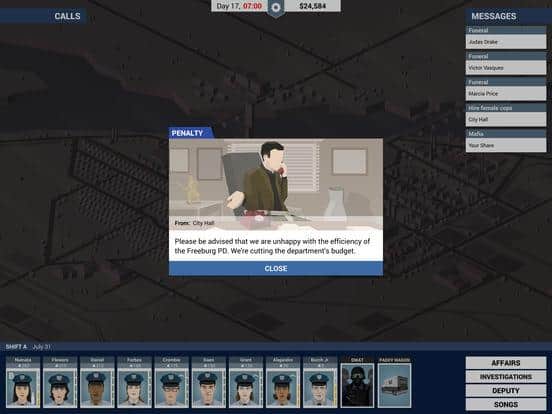 Esto es la Policía - un juego para IOS donde juegas el papel de jefe de policía. En este juego controlarás a la policía y tomarás decisiones difíciles y equilibradas. El objetivo de todos los juegos será que durante 180 días necesitas ganar 500 mil dólares y para eso harás lo que sea necesario. Constantemente tendrás la opción de ser pobre e incluso un policía o aceptar sobornos y volverte corrupto. Tus responsabilidades incluirán interrogar testigos, recoger pruebas y buscar criminales. Toma decisiones y disfruta del juego que está hecho en estilo de cómic.