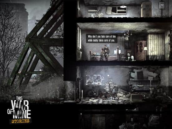 Esta Guerra de Mine: Historias – juego indie original para IOS donde juegas el papel de un padre que debe salvar a su hija. En este juego, interpretarás el papel del padre de Adam, quien intenta frenéticamente rescatar a su hija de una terrible guerra y violencia. Tu tarea será explorar la ciudad en ruinas que está bajo asedio y tratar de escapar. Descubre la historia de amor, odio y amargura – emociones que experimentarás en los días más difíciles. Resuelve tareas difíciles, que a menudo serán moralmente ambiguas y participa en una misión peligrosa.