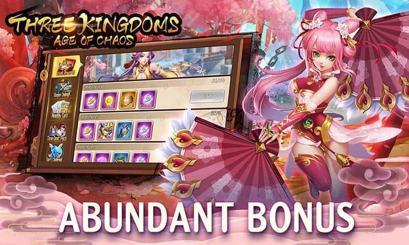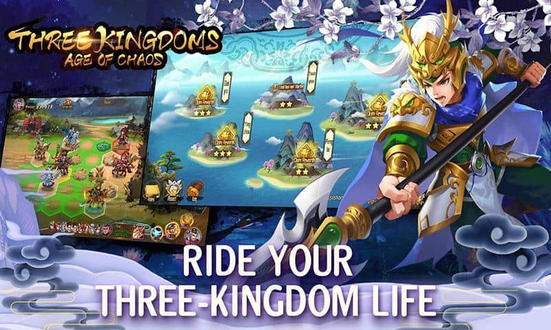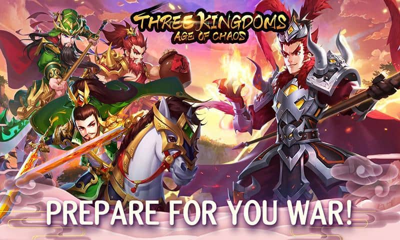Three Kingdoms: Age of Chaos es un juego para Android donde serás transportado a la era de los tres reinos. Toma control de tus cartas con valientes y famosos generales y participa en batallas por turnos contra múltiples oponentes. Cada General en este juego tendrá habilidades y destrezas únicas que te serán útiles en la batalla. En el juego conocerás varios personajes de la mitología china y usarás sus habilidades contra los oponentes. Desafía a otros jugadores de todo el mundo y combátelos en arenas. Explora las ubicaciones escénicas del juego y utiliza diferentes modos.