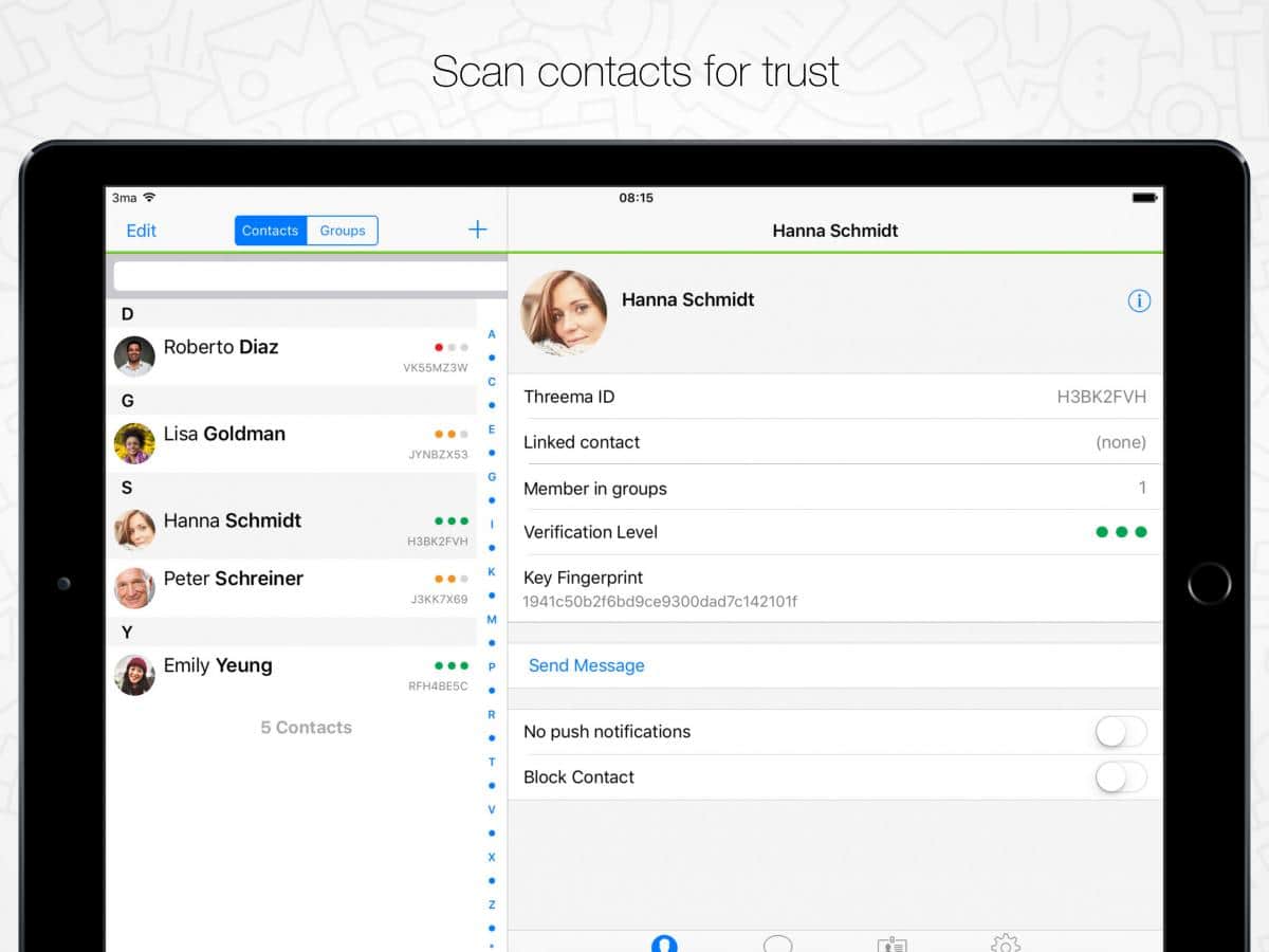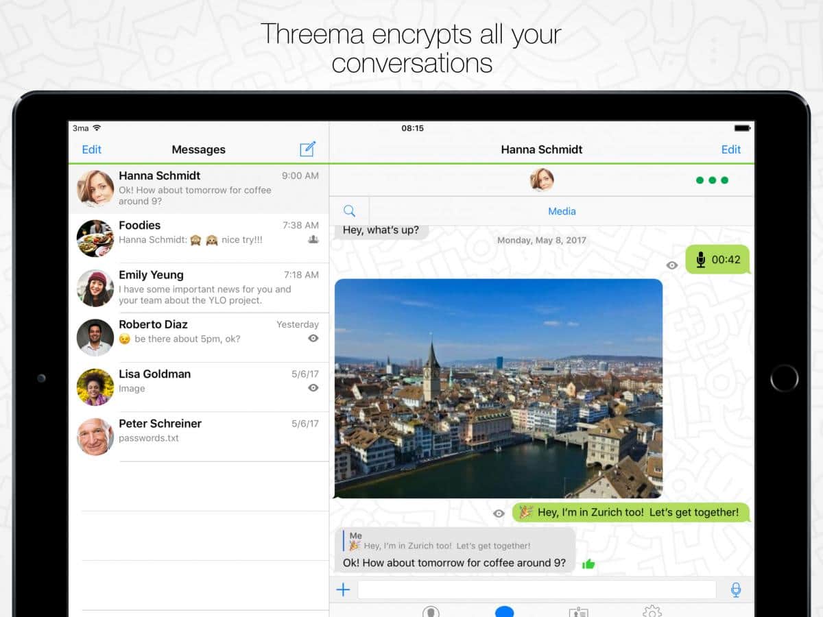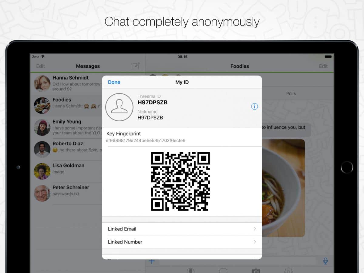 Threema - ¿Quieres permanecer anónimo en todo lo relacionado con tu información personal y correspondencia? Entonces solo necesitas instalar este magnífico mensajero en el que toda la correspondencia es completamente anónima y nadie puede leerla excepto tú. Además, todos los datos están cifrados de forma segura para que los hackers no puedan acceder a ellos.