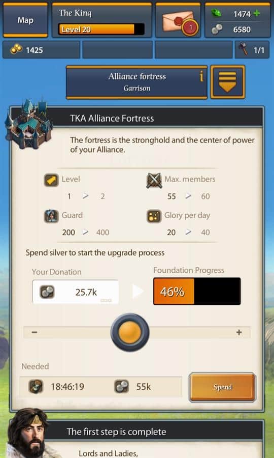 Throne Wars – una estrategia militar en la que podrás reclamar tu derecho al trono del rey. Comienza tu juego como un joven regente y construye tu reino invencible. Reúne un enorme ejército, llama a tus aliados y participa en grandiosas batallas con otros jugadores que intentan ocupar el trono del rey. Muestra tu fuerza y valentía en este popular juego medieval con enormes mapas y habilidades increíbles. Toma el lugar del rey en este juego y expande tus dominios conquistando tierras enemigas, nombra a personas responsables y sabias para los puestos principales, y crea nuevas armas y tecnología. Comienza a jugar ahora mismo y demuestra a todos que eres el mejor y más justo rey.