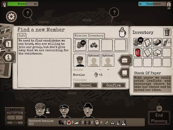 A través de los momentos más oscuros es un juego de estrategia histórica que sumerge a los jugadores en la sombría Berlín de 1933, cuando los nazis llegaron al poder. Lideras la resistencia, organizas operaciones secretas, distribuyes volantes y arriesgas tu vida para oponerte al régimen. Tus decisiones determinan el destino del grupo y de aquellos que confían en ti. La táctica, la estrategia y las decisiones morales juegan un papel clave en este juego emocional y atmosférico.