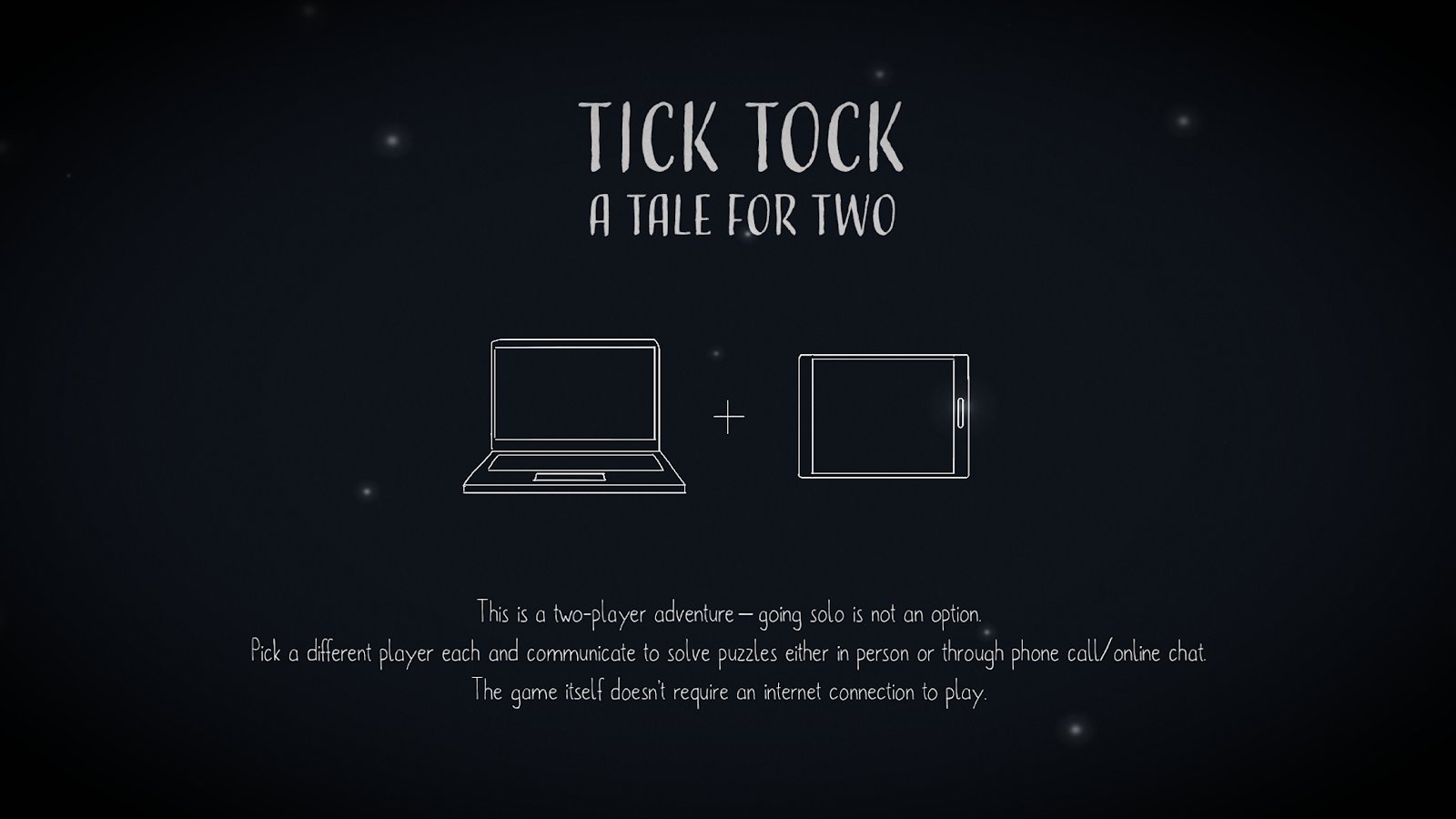 Tick Tock: Una historia para dos – el juego corporativo, para dos jugadores. Cada jugador debe jugar en su dispositivo y compartir entre sí la conexión de voz. En este juego, tú y tu amigo se encuentran atrapados en el tiempo en el mundo. El tiempo pasará y su tarea será resolver rompecabezas y tareas desafiantes lo más rápido posible para salir de este mundo. La comunicación y la cooperación entre los jugadores son clave, porque ninguno de ustedes puede completar esto en este mundo terrible y oscuro. Juega con amigos y disfruta de su tiempo libre.