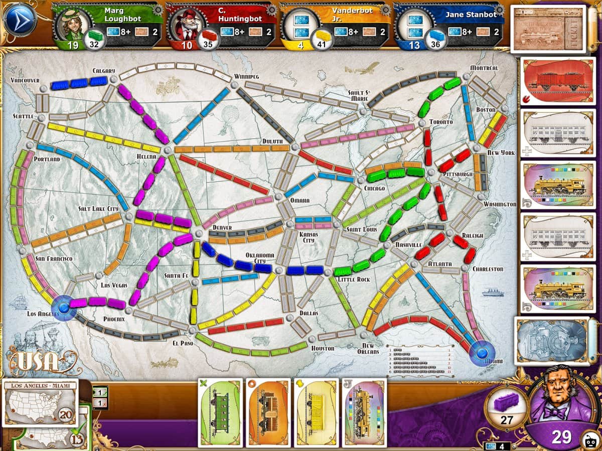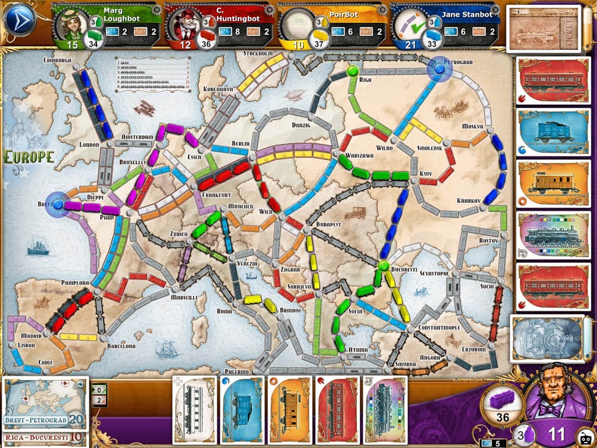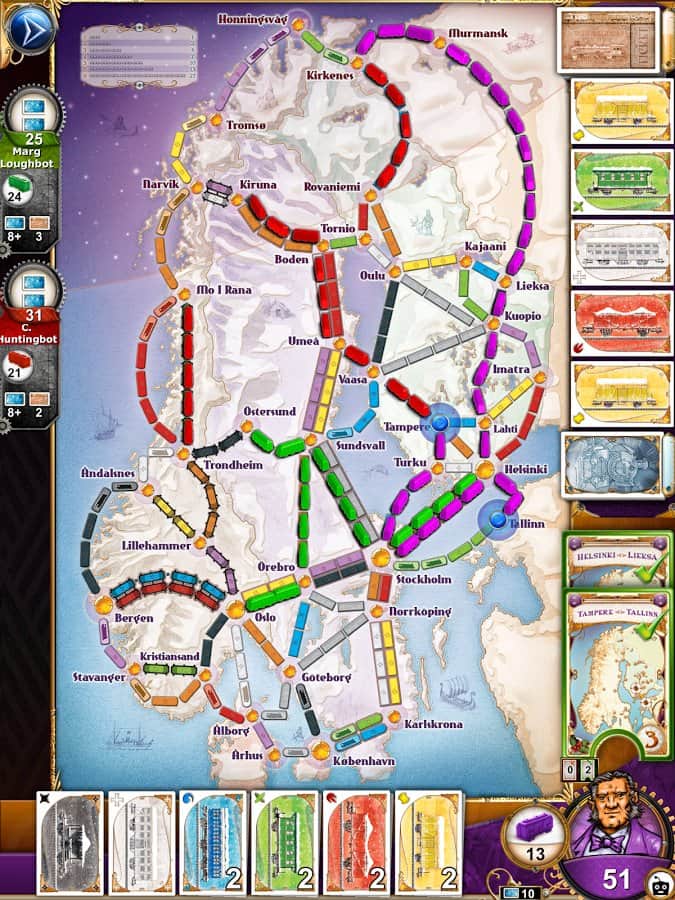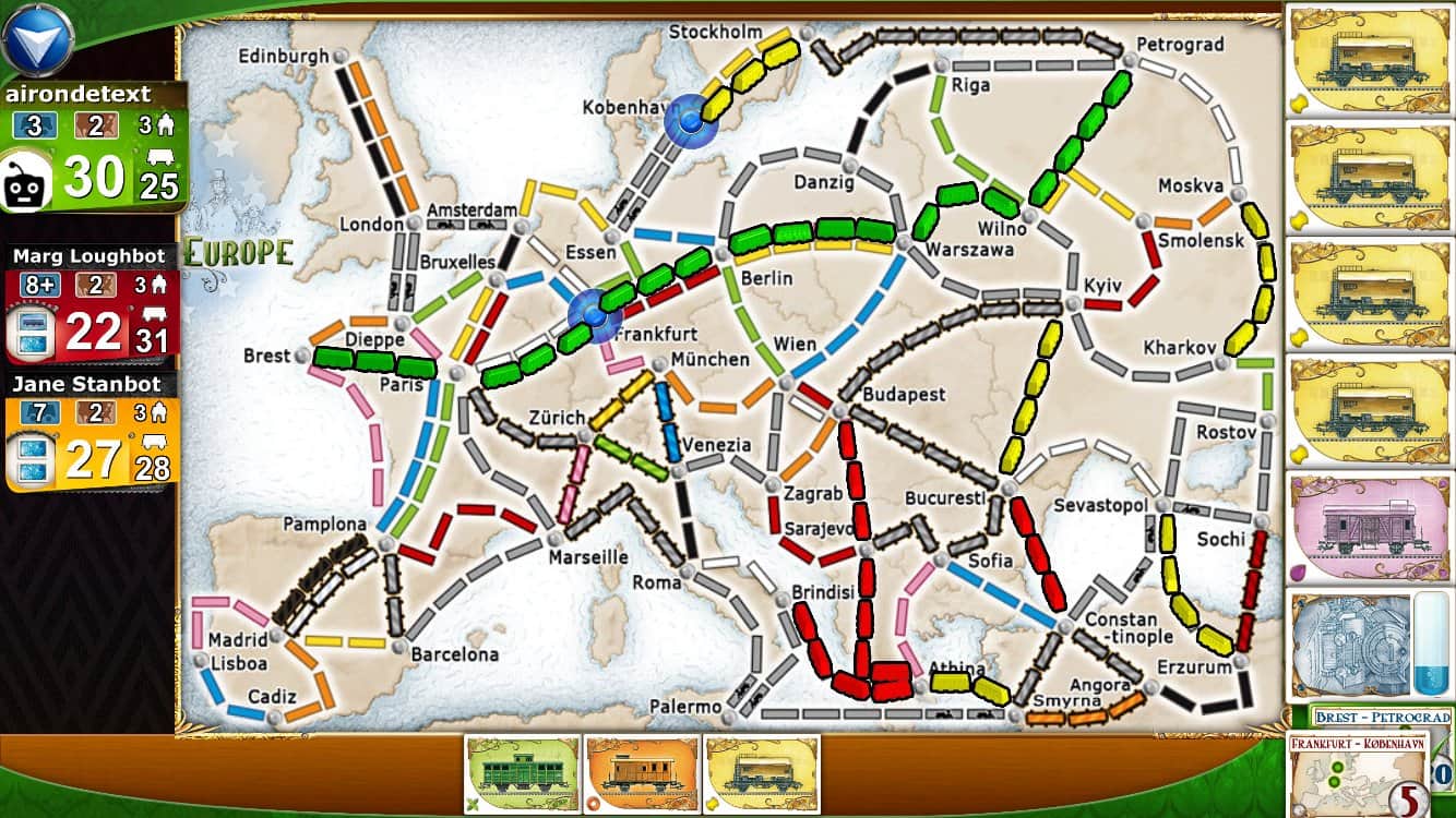 Ticket to Ride - Juego de mesa para Android con elementos de estrategia. Te sumergirás en el mundo del transporte ferroviario. Compra la estación y los trenes, libera y descubre nuevas formas de establecer y transportar. El jugador tiene la oportunidad de enfrentar a oponentes virtuales y luchar con sus amigos en línea.