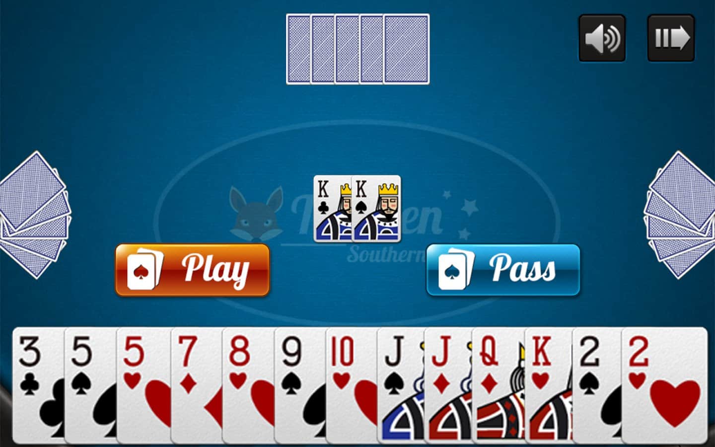 Tien len mien nam es un gran juego de cartas en la mesa que es muy popular en Vietnam. Las reglas del juego son muy simples, tu tarea será derrotar las cartas de tus oponentes y ganar tus primeros juegos. En este juego puedes jugar contra la computadora para mejorar tus habilidades, convertirte en un jugador profesional y ascender a la cima de la tabla de clasificación. En este juego jugarás contra tres oponentes, a cada uno de los cuales se le repartirán las cartas. Muévete y deshazte de la carta pequeña a continuación lo antes posible para completar la ronda de lanzamiento de cartas a los competidores. Desarrolla tu estrategia de juego y resuelve rompecabezas desafiantes.
