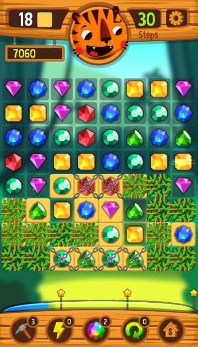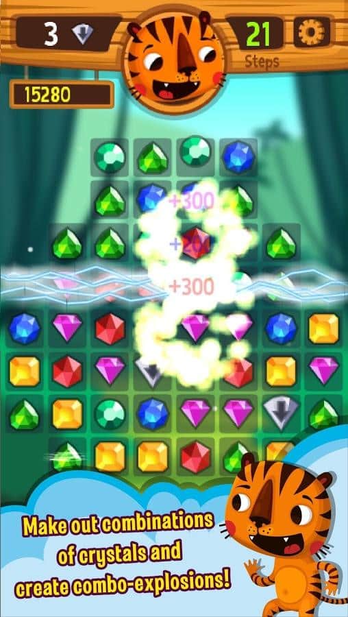 Tigre - Las Gemas Cazadoras Match3 – juego del género tres en raya para Android, en el que viajarás por el mundo del tesoro. En este juego ayudarás a un tigre divertido a emparejar gemas y hacer que desaparezcan. Empareja tres o más cristales de colores y enemigos. Resuelve acertijos desafiantes y trata de pasar todos los niveles en menos movimientos, utiliza muchos bonos. Viaja por el mundo de cuentos de hadas y trata de aprovechar al máximo las largas filas de cristales. Disfruta de unos gráficos coloridos y magníficos y de muchos niveles.
