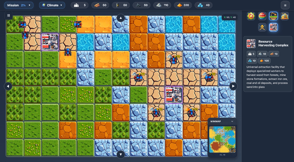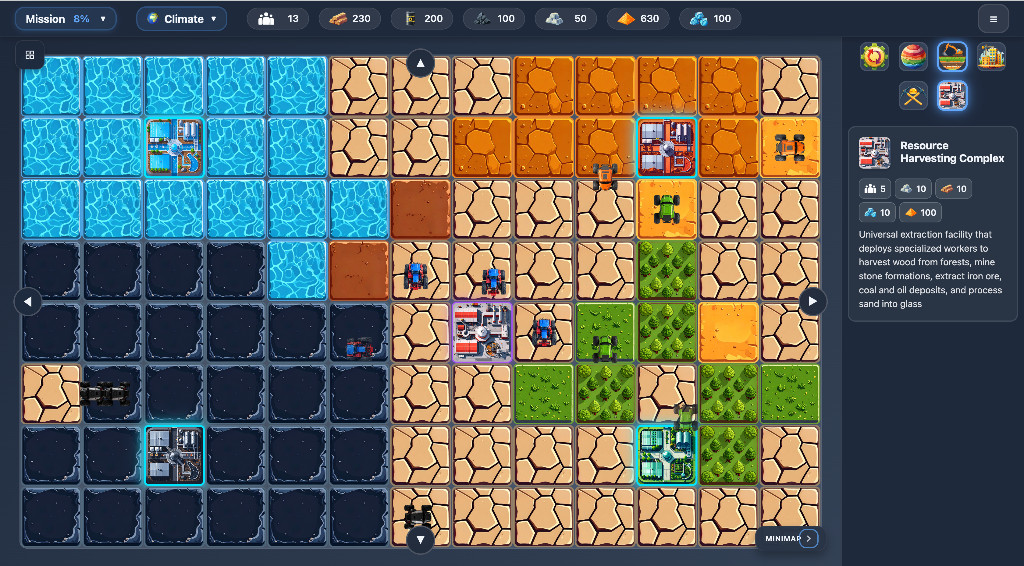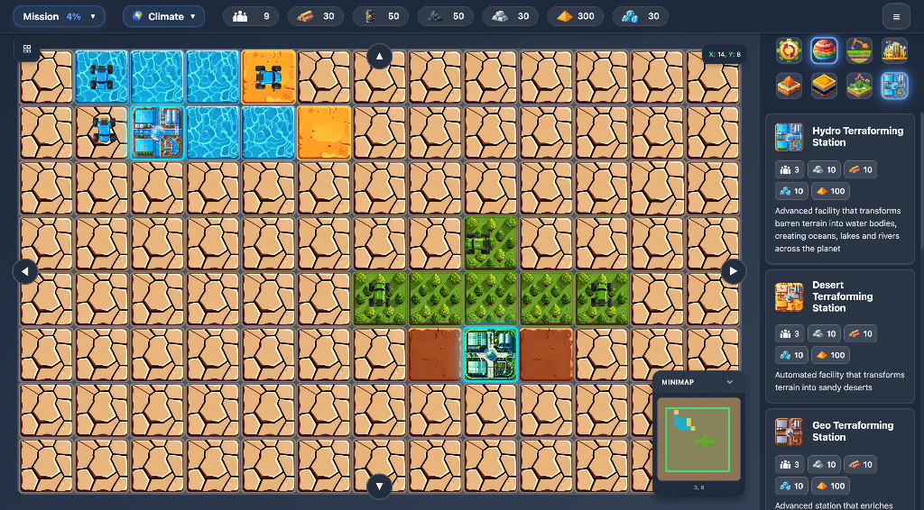Tilecraft es un simulador estratégico de terraformación donde transformas planetas desiertos en civilizaciones prósperas. Gestiona recursos, construye ciudades, crea infraestructura y observa cómo mundos muertos cobran vida. Automatiza procesos, lanza cohetes y explora nuevos sistemas planetarios, transformando la galaxia paso a paso.