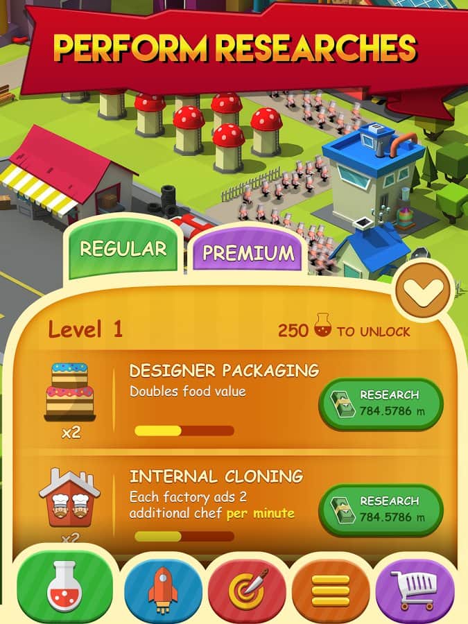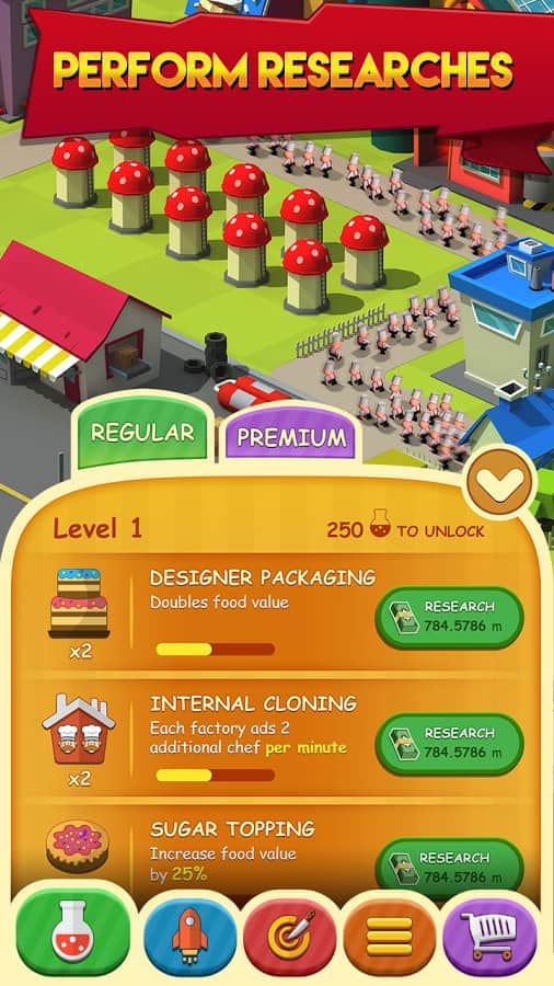 Tiny Chef : Juego clicker en Android, donde te conviertes en el propietario de un enorme negocio de pasteles y postres. Toca la pantalla de tu teléfono tan a menudo como sea posible y expande tu negocio. Controla a varios chefs y cocina postres y diversas delicias. Conviértete en el propietario de restaurantes, tiendas y fábricas que te traerán un fabuloso beneficio. Desarrolla tus fábricas, construye nuevas y adquiere diversos equipos y maquinaria que necesitas para producir. Recluta nuevos chefs y ten más productos.