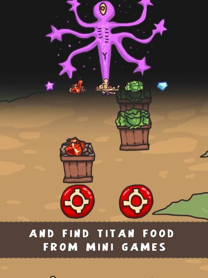¡Disfruta de un divertido juego donde necesitas hacer crecer tu Titán! Dependiendo de lo que le des de comer hasta que se convierta en un pequeño humano (carne, verduras o joyas), dependerá de lo que se convertirá. Las apariencias en cada nivel serán cada vez más llamativas, porque el protagonista no solo es enorme en tamaño, sino también con diferentes tipos de partes del cuerpo (muchas parejas de manos, cambia el color de la piel de manera loca, 6 ojos, nueva ropa o incluso sin ella, etc.). ¡Ese juego se aburre rápidamente, juega emocionantes mini-juegos donde puedes conseguir comida para el Titán!