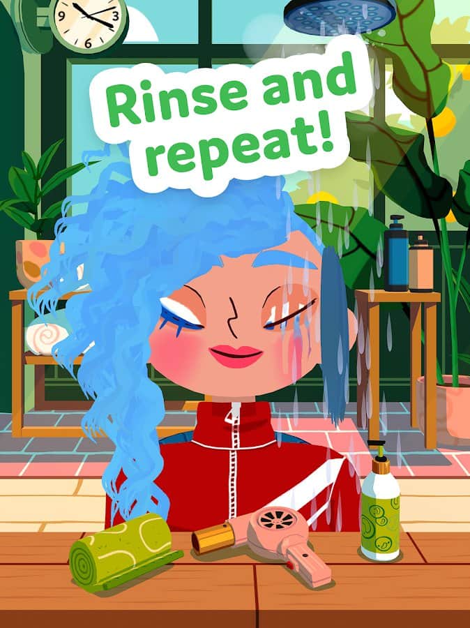 en la aplicación Toca Hair Salon 4 podrás sentirte como un verdadero profesional peluquero y estilista. estarás creando imágenes hermosas, elige un personaje y realiza tus ideas creativas en la realidad. Haz el peinado original, elige el maquillaje y accesorios adecuados, decora el rostro con pintura facial. En cada una de las 5 habitaciones (peluquería, maquillaje, lavado, tienda y cabina fotográfica) puedes disfrutar de tu obra maestra y tomar fotografías. En la sala de exhibición podrás elegir el estilo adecuado de ropa, conjuntos y kits. Estar a la moda y brillar por su originalidad.