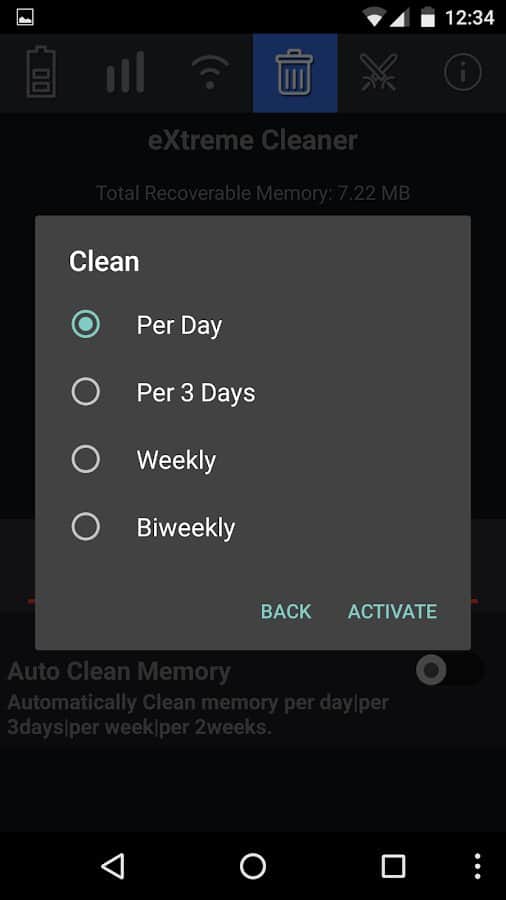 Limpieza automática de la memoria: diaria, cada 3 días, semanal, o una vez cada dos semanas.