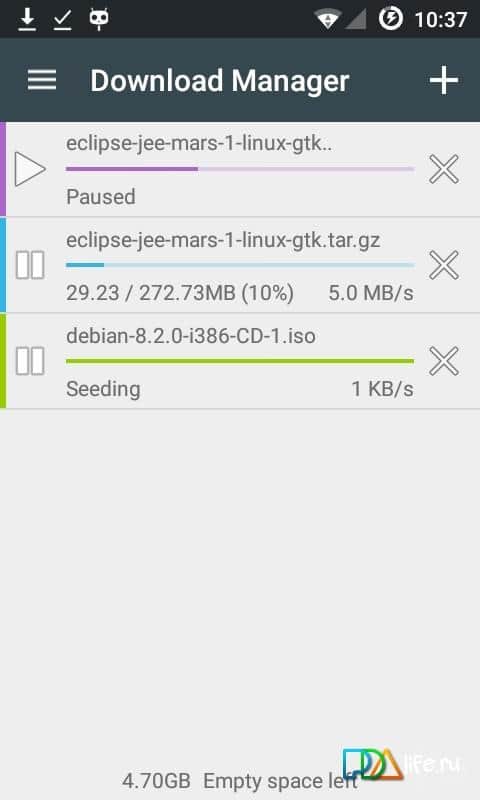 Descargador de Torrent - ¿Para cambiar constantemente entre diferentes gestores de descarga de archivos? Ahora hay una forma alternativa de resolver este problema. Todo lo que necesitas es descargar esta aplicación, instalarla, y en solo unos segundos puedes descargar tanto torrents como otros archivos, ya sea música o imágenes. Todo esto a máxima velocidad, y con una interfaz fácil de usar, que muestra claramente la banda de descarga. Así como una variedad de diferentes configuraciones, y la capacidad de establecer prioridades.