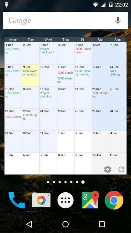 - configuración flexible y visualización del calendario en diferentes modos (día, semana, mes)