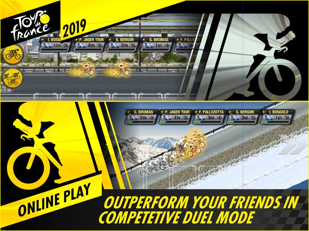 el Juego Oficial del Tour de Francia 2019 - Manager de Deportes - es la versión oficial del Manager que establece algunas de las carreras de ciclismo más famosas, el Tour de Francia. Así que, debes asumir el papel del Manager y dueño de su propio equipo de corredores profesionales, mientras que tus responsabilidades incluirán la selección de atletas, el personal, la planificación, el entrenamiento, la compra de equipos y mucho más. Además, estarás directamente en la pista durante las carreras y evaluando la situación para tomar decisiones.