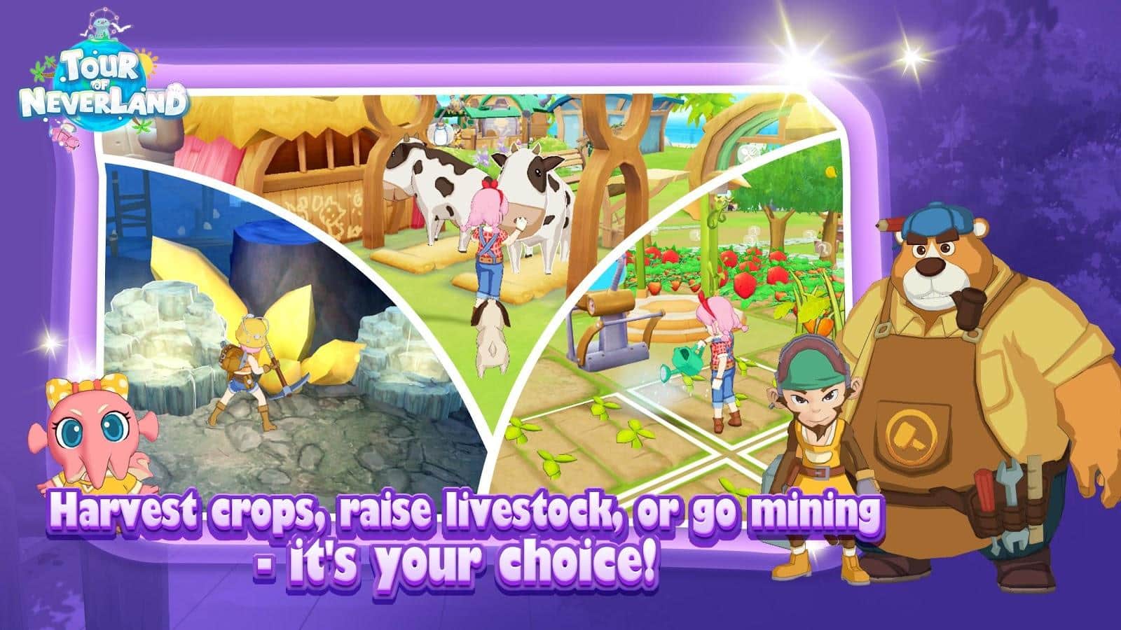 el Tour de Nunca Jamás - Administra tu propia granja en una isla tropical, descubre nuevas tierras, planta cultivos, construye todo tipo de instalaciones agrícolas y decora tu casa como quieras! Atrapa peces directamente del océano o haz esnórquel para atrapar criaturas marinas. Construye un dormitorio para atraer visitantes y hacer nuevos amigos animales. ¡Incluso puedes saltar a un carrito de mina y explorar las profundidades de las minas en busca de tesoros invaluables!