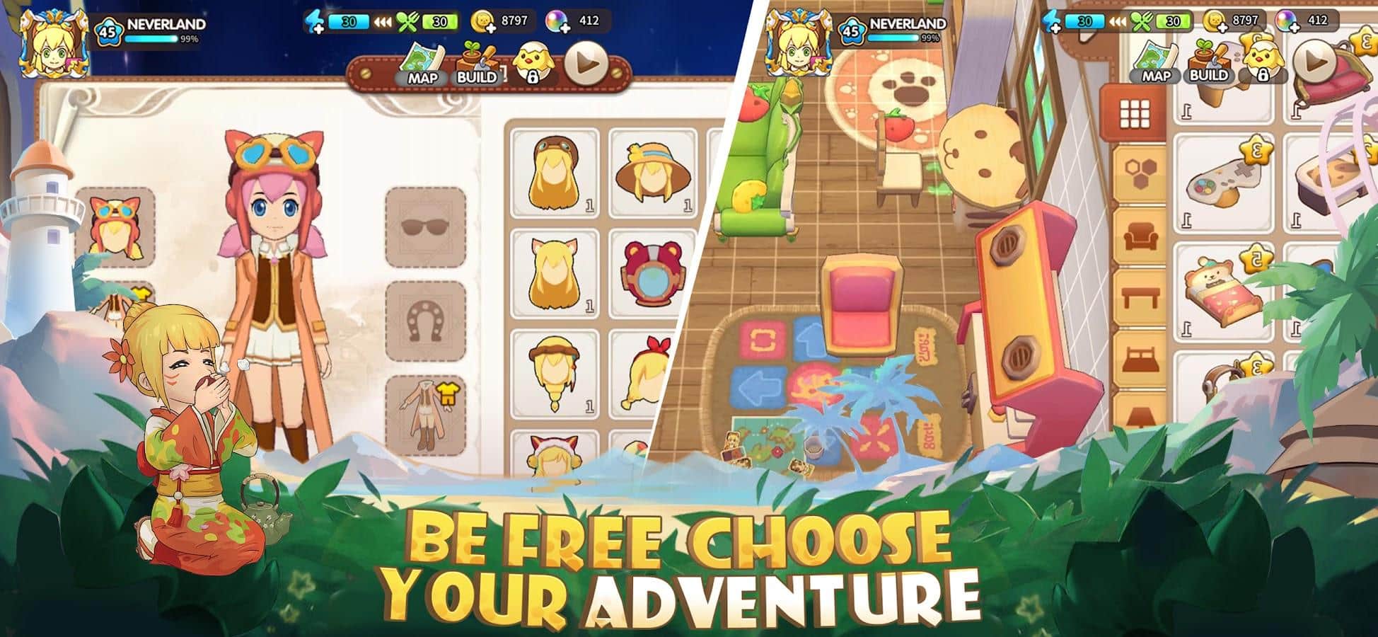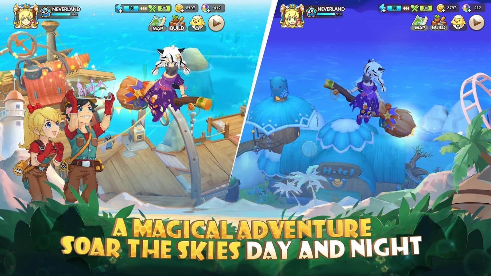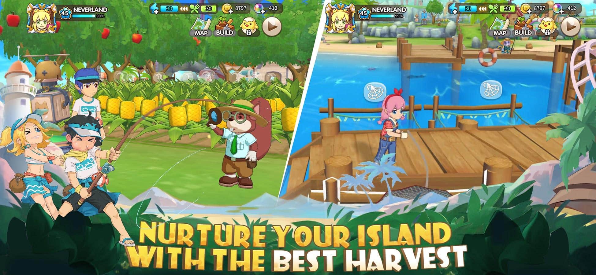 Tour de Nunca Jamás: Viajes - Bienvenido a una isla tropical donde puedes convertirte en el dueño de tu propia granja. Una emocionante aventura te espera, donde puedes vestir toda la tierra y crear tu propia granja única. Descubre nuevas parcelas de tierra para diversificar tus cultivos. Planta diferentes tipos de cultivos para obtener frutas y verduras frescas. Usa tus habilidades agrícolas y construye todo tipo de granjas para aumentar tu producción y proporcionar un lugar acogedor para tus animales. Pero la granja no es lo único que te espera en esta increíble isla. Explora las extensiones del océano y pesca directamente de sus profundidades.