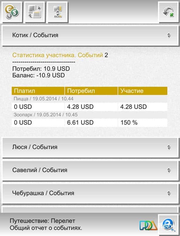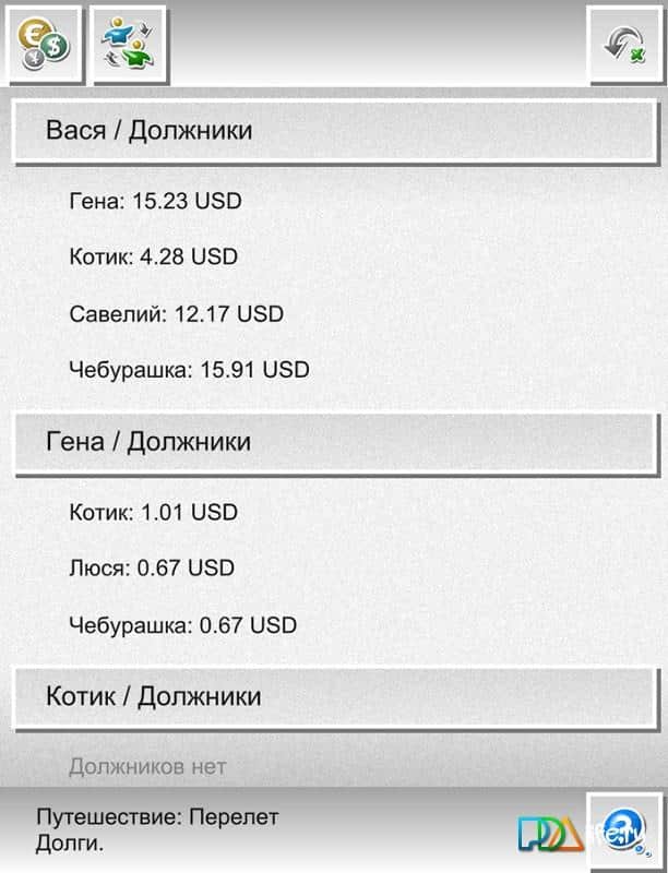Cartera Turística – un gran programa en Android para aquellos que disfrutan de la compañía. Cartera Turística te ayudará a entender quién es quién y cuál debería ser el resultado de la finalización de unas vacaciones conjuntas, o en cualquier momento de los eventos. Así que no tendrás que pasar largos y incómodos momentos tratando de averiguar los aspectos financieros en el círculo de amigos, Cartera Turística lo hará todo por ti. Las características del programa incluyen lo siguiente: