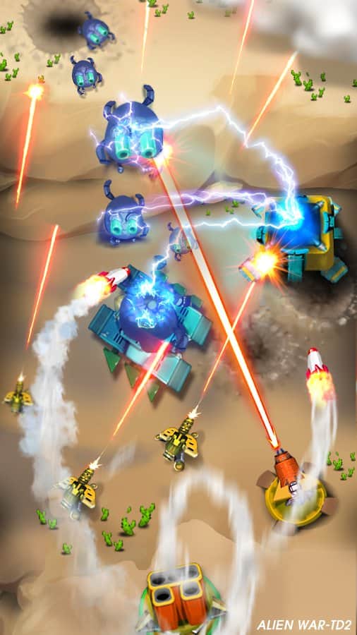 Defensa de Torres: Guerra Alienígena TD 2 es la secuela de la popular estrategia para Android, donde defenderás la torre de los enemigos. Los alienígenas con los que luchaste en la última parte no están todos muertos y ahora han reunido un nuevo ejército para atacarte. En esta parte del juego, se desafiará a los jugadores a desarrollar una estrategia imbatible dada la artificialidad del terreno móvil, lo que añadirá complejidad al juego. Usa nuevas armas y previene ataques cuerpo a cuerpo. Juega este juego y disfruta de unos gráficos coloridos de paisajes en constante cambio y armas destructivas. Destruye a todos los alienígenas que se acerquen a tu base y no dejes que te derroten.