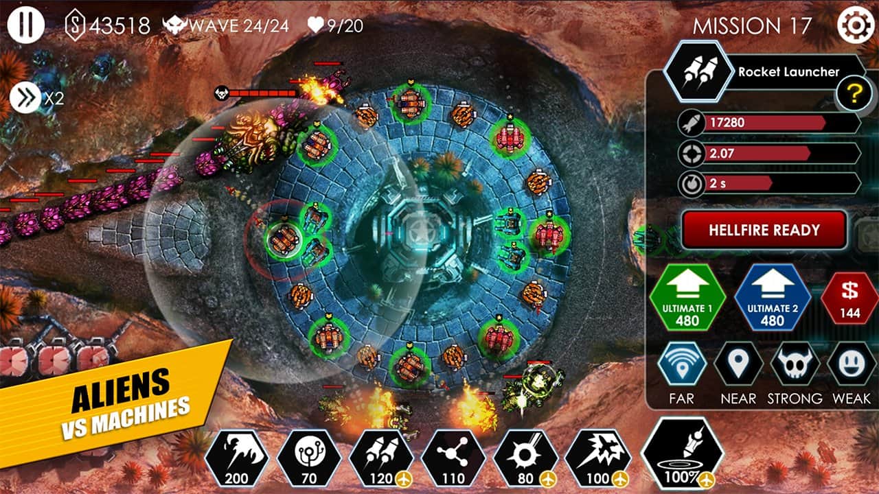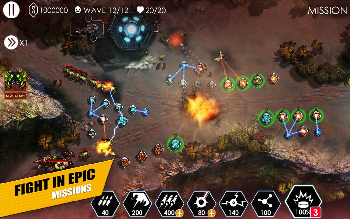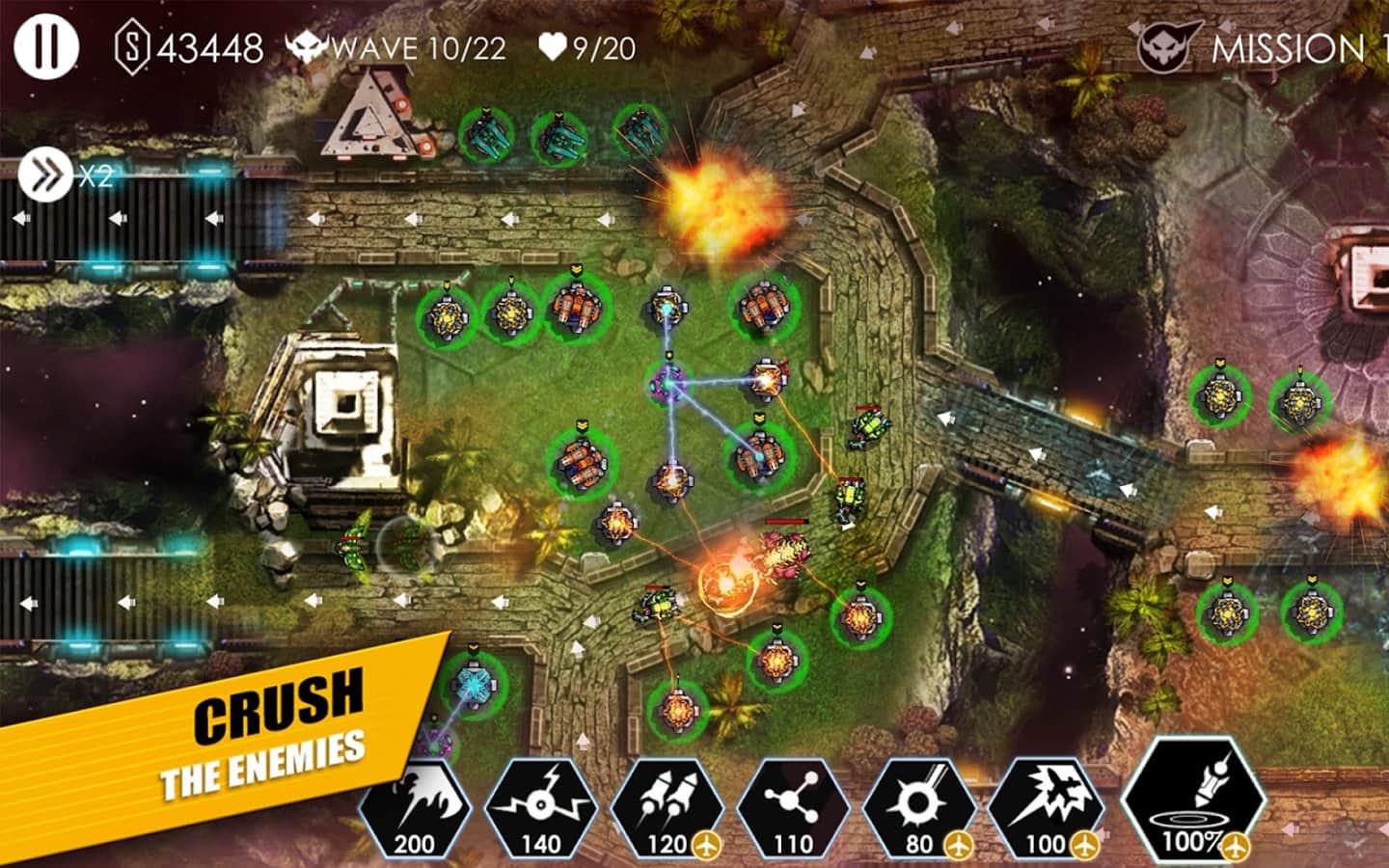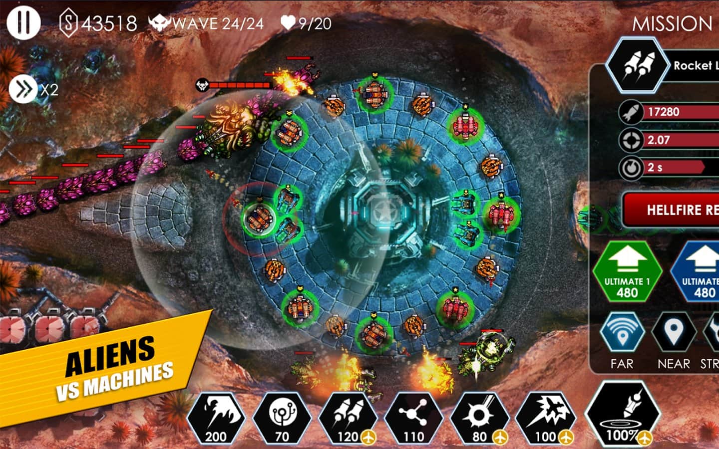Tower Defense: Invasión - un gran juego en el estilo de defensa de torres. Aquí te enfrentarás a los invasores alienígenas, que decidieron tomar la tierra para sí mismos. Incluye varios tipos diferentes de torretas, que se centrarán en diferentes tipos de misiones. Algunas golpearán en área pero causarán menos daño, las otras tendrán que destruir enormes enemigos, pero solo un objetivo. Necesitas encontrar el equilibrio perfecto y detener la invasión y destruir a los líderes alienígenas.