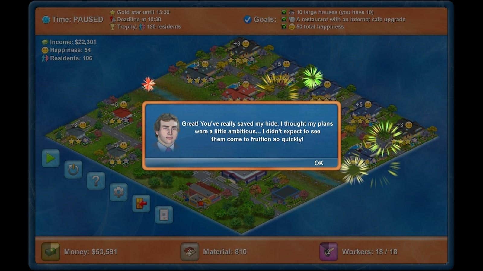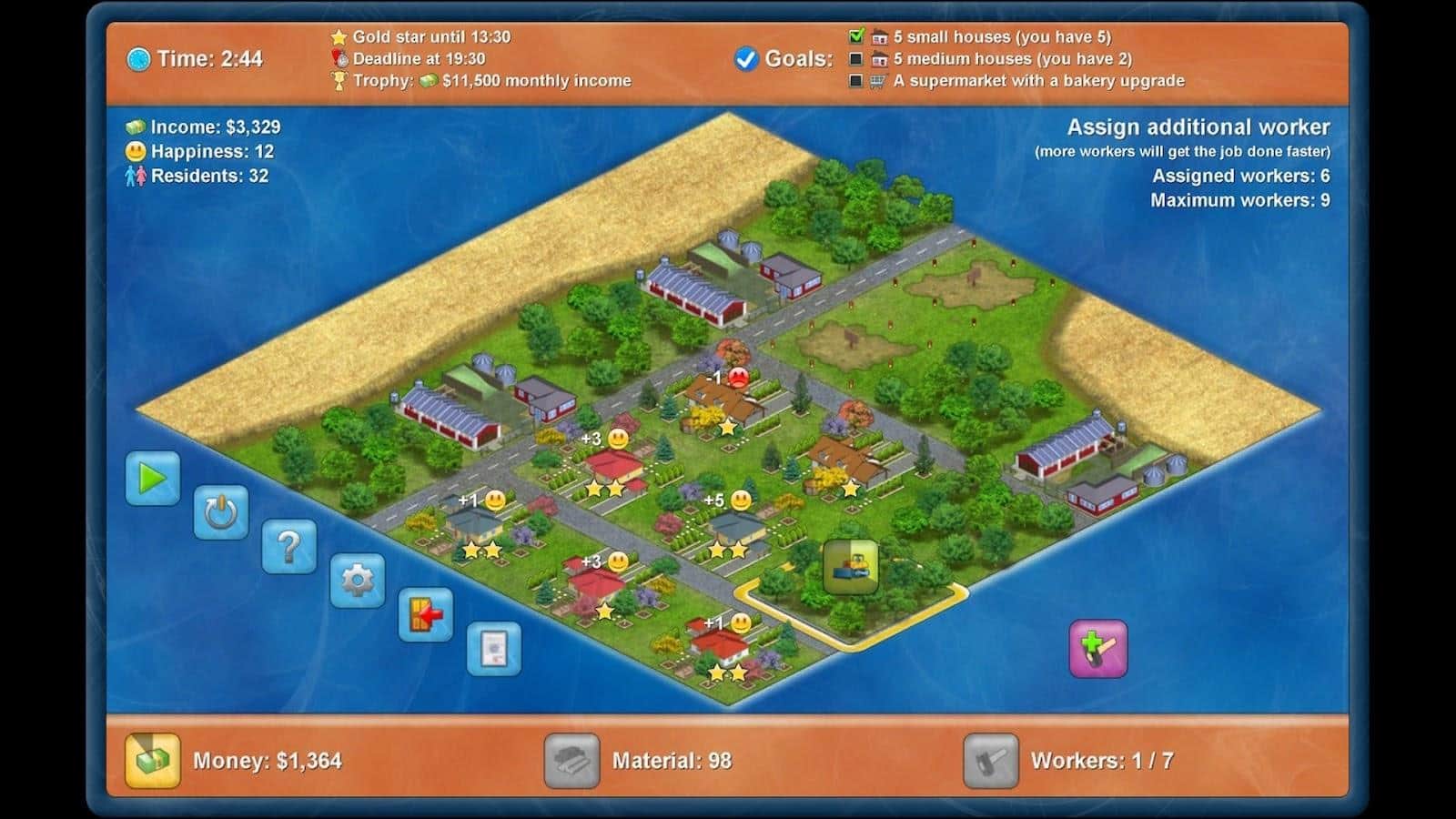 En este emocionante juego de simulación, tendrás que construir tu propio distrito urbano, donde la vida florece al ritmo de tu éxito. Comienza pequeño y construye tu distrito urbano, llenándolo con docenas de casas y edificios. Tu objetivo principal es hacer felices a los residentes proporcionándoles todos los servicios necesarios, y a cambio de tus esfuerzos, serás recompensado con un ingreso ordenado. Elige tu propio camino hacia el éxito: sigue la cautivadora historia en modo campaña o crea tus propios niveles, desatando tu potencial y creatividad. Gana recompensas y premios, conquistando nuevas alturas y alcanzando la cima de tu desarrollo. En cada etapa de tu construcción, disfrutarás de la jugabilidad clásica y sencilla de un simulador de gestión del tiempo de la popular serie Townopolis-Romopolis-Megapolis. Sumérgete en un mundo de posibilidades infinitas y deja que tu ciudad prospere bajo tu sabia dirección.