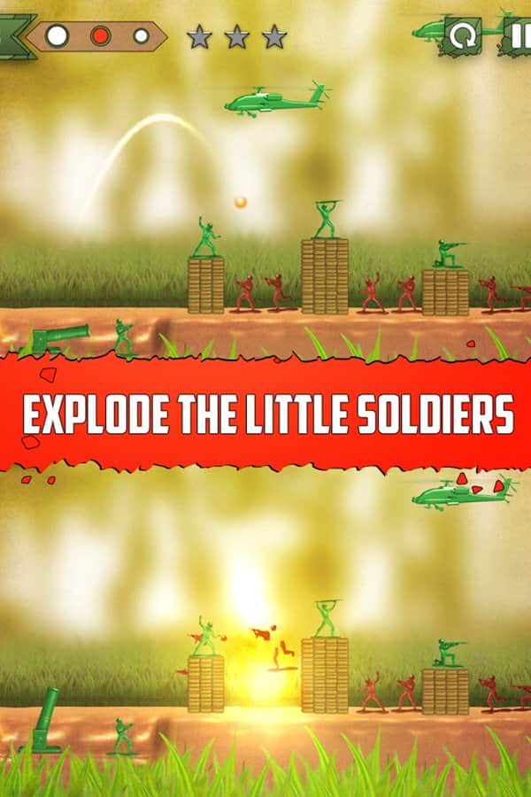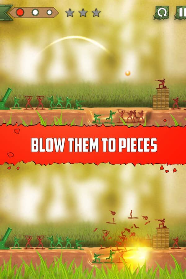 Guerras de Juguetes: Historia de Héroes - antes de ti, estrategia de juguetes para Android. Desenvuelve la lucha con soldados de juguete y cañones. Carga el arma y dispara al enemigo. Y lo más importante: necesitas proteger a toda costa al batallón verde, para que pueda cumplir diferentes misiones. ¡Bueno, si logras pasar el nivel con 3 estrellas, no tienes igual! ¡Sin sangre, controles simples, jugabilidad divertida e interesante y mucha diversión!