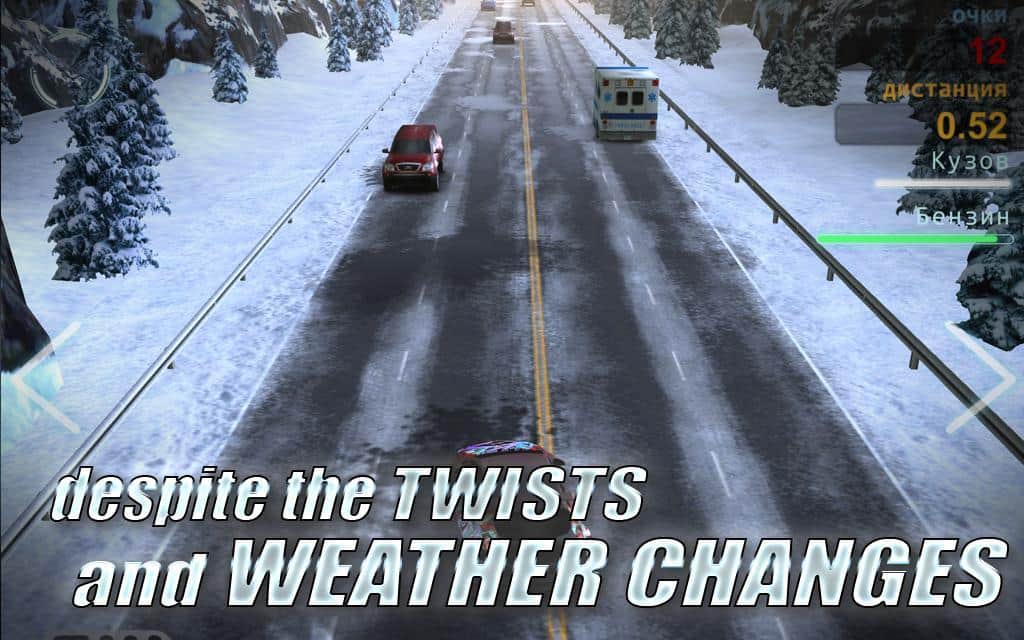 Traffic Nation: Street Drivers - un simulador de carreras que, por su mecánica de juego, está más cerca de los runners, aunque los desarrolladores se esforzaron por darle un aspecto más serio al juego. Así que, tu tarea es manejar el automóvil y sortear el denso flujo de tráfico, evitando colisiones y tratando de recorrer la mayor distancia posible. Todo parece como siempre, si no fuera por una serie de momentos agradables. La excelente gráfica tridimensional transmite perfectamente el dinamismo y la tensión de las carreras, y la física realista complementa la atmósfera. Una rica selección de automóviles con posibilidad de configuración y personalización completa. Varios modos, diferentes opciones de control, posibilidad de elegir la vista, bonificaciones, premios, logros, sobre todo esto los desarrolladores también se han acordado.
