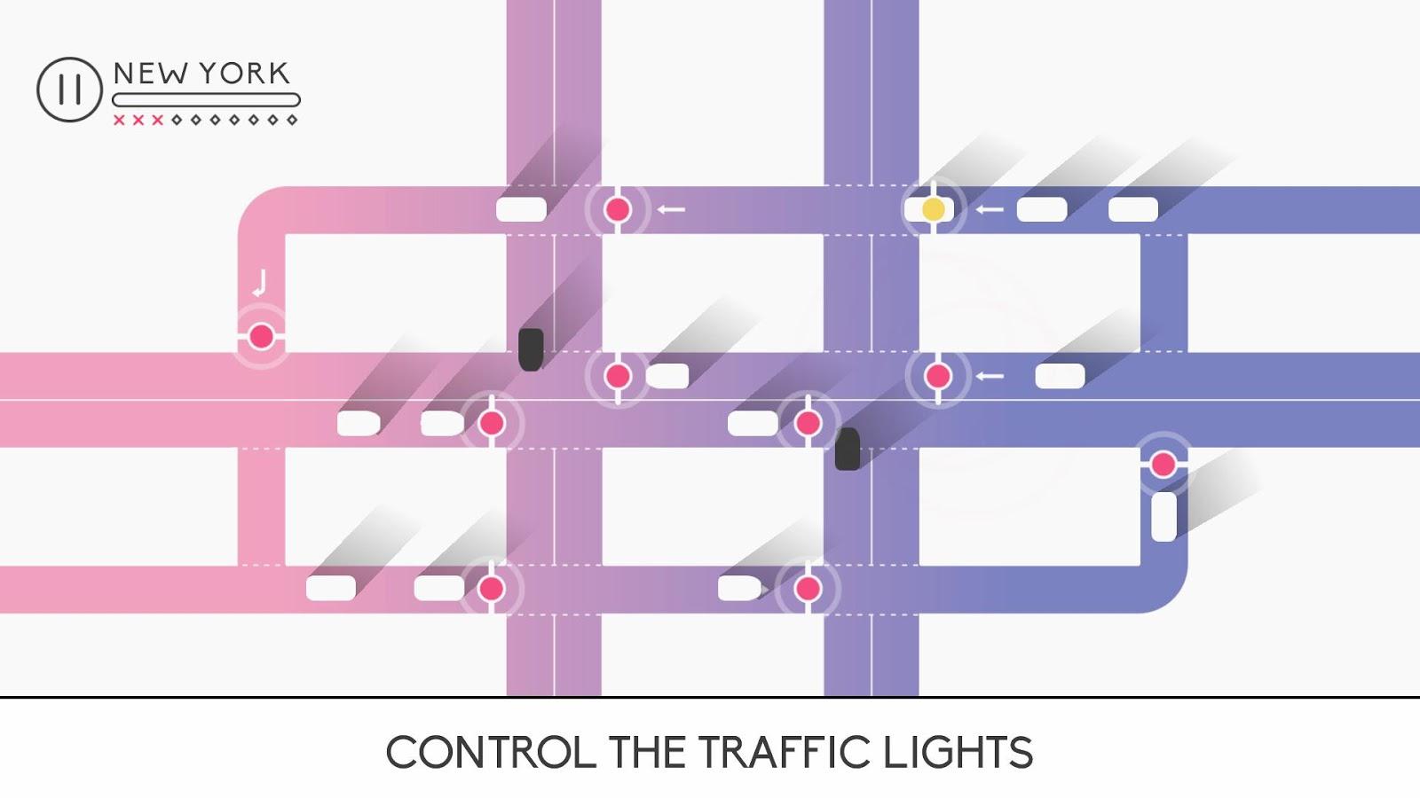 Traffix – juego de rompecabezas minimalista para Android donde regularás el tráfico en las carreteras. En las carreteras de las grandes ciudades está sucediendo un verdadero caos y tu tarea será regular el tráfico. En el momento adecuado, toca la pantalla de tu teléfono o tableta para controlar el cambio de luces. En este juego regularás el movimiento de coches, camiones, trenes e incluso aviones. Con cada nuevo nivel, la complejidad del juego aumentará y tendrás que trabajar duro para prevenir accidentes en la carretera.