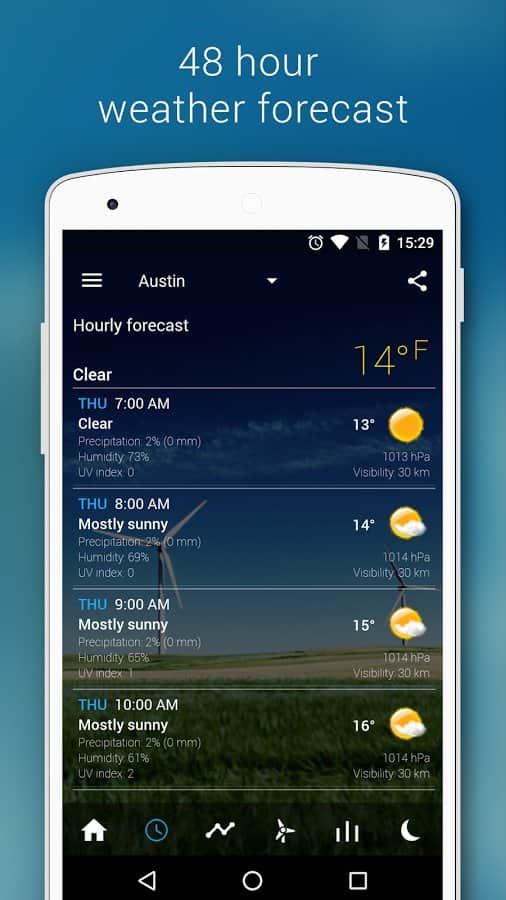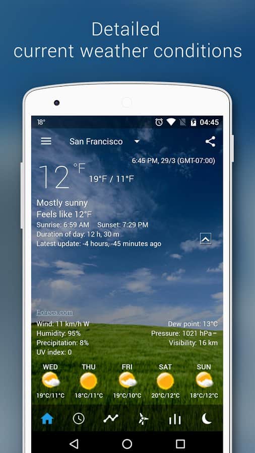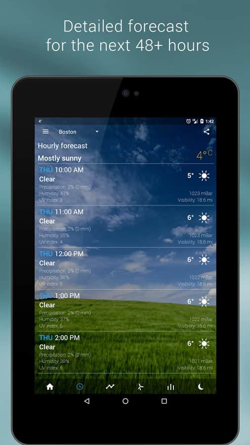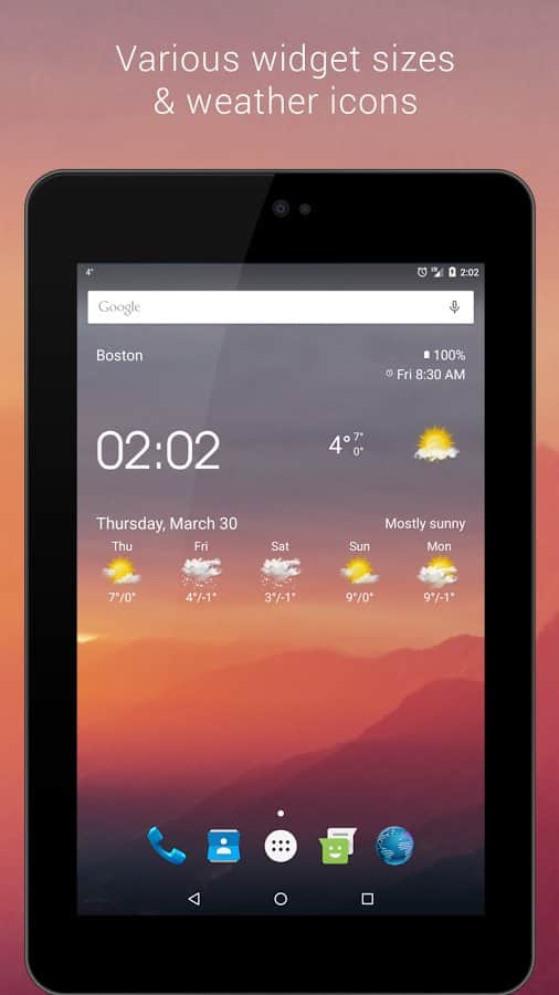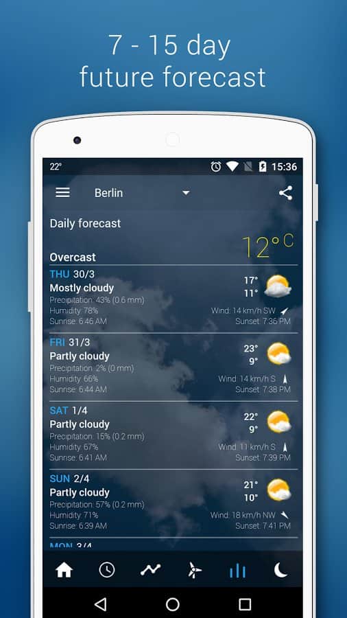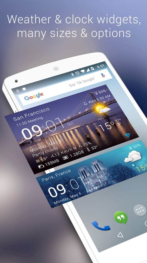 ¿No es hora de actualizar los widgets en tu smartphone? Te proponemos probar Transparent clock & weather: un bonito y funcional widget con reloj y clima. Además de la hora actual, el programa mostrará la hora del amanecer y del atardecer, la duración del día, el clima para los próximos días con las temperaturas mínima y máxima, la humedad y la velocidad del viento. Por defecto, los datos se actualizan automáticamente, pero si lo deseas, también puedes actualizarlos manualmente. No es necesario configurar la ubicación por separado: el programa lo hará automáticamente.