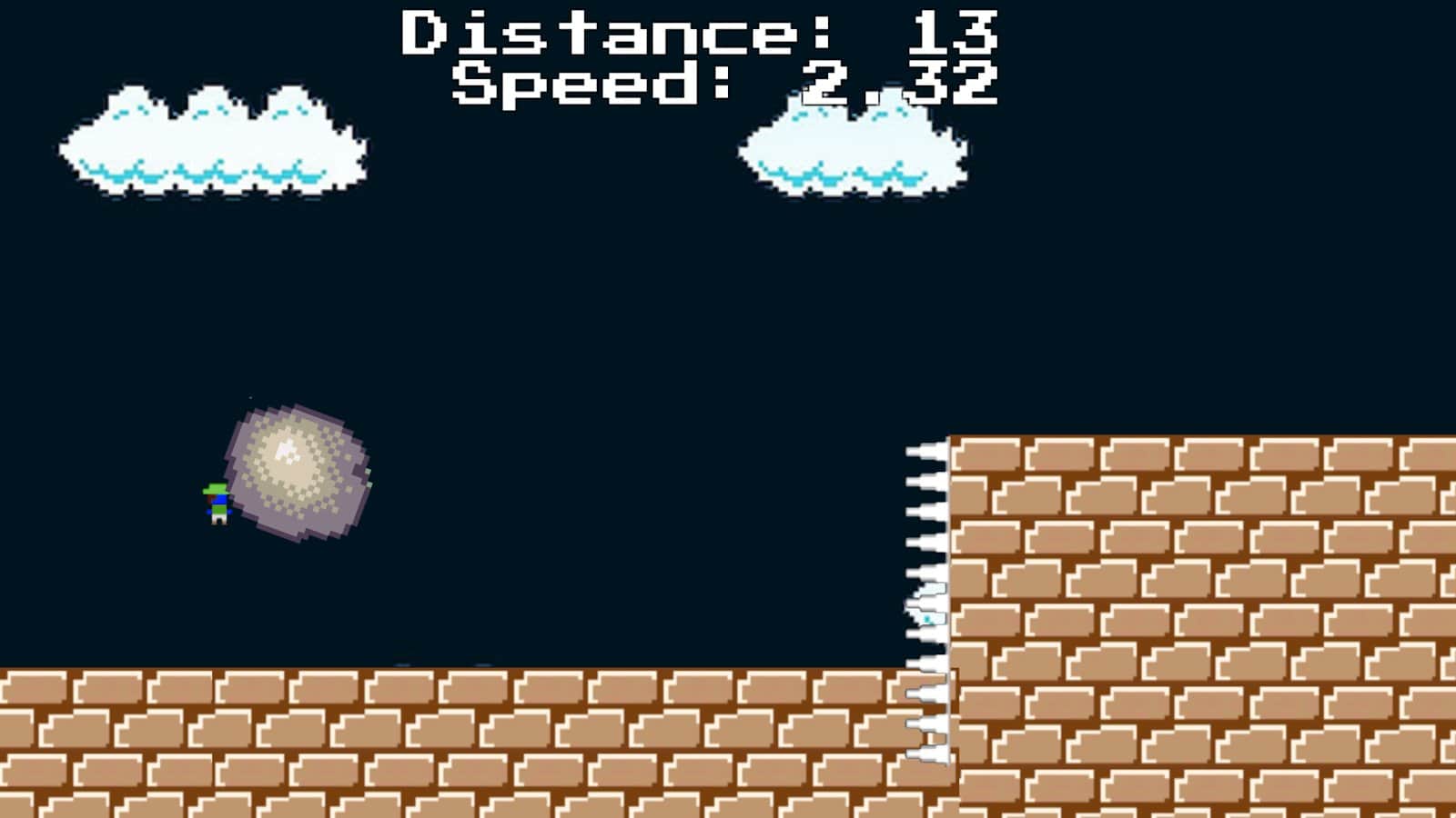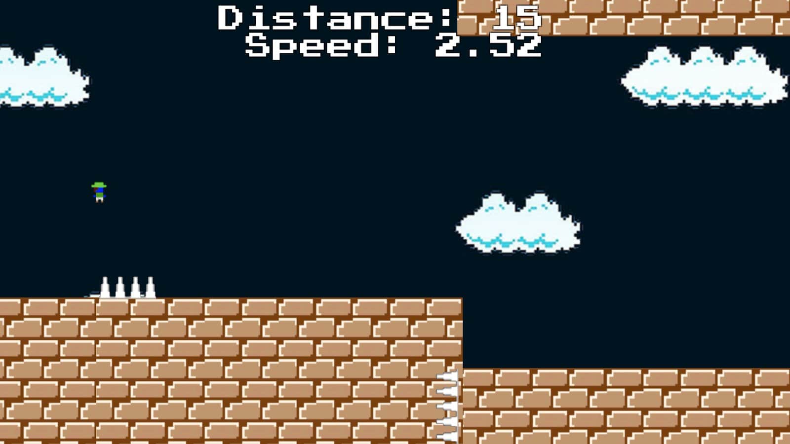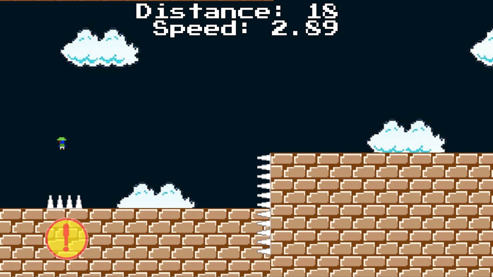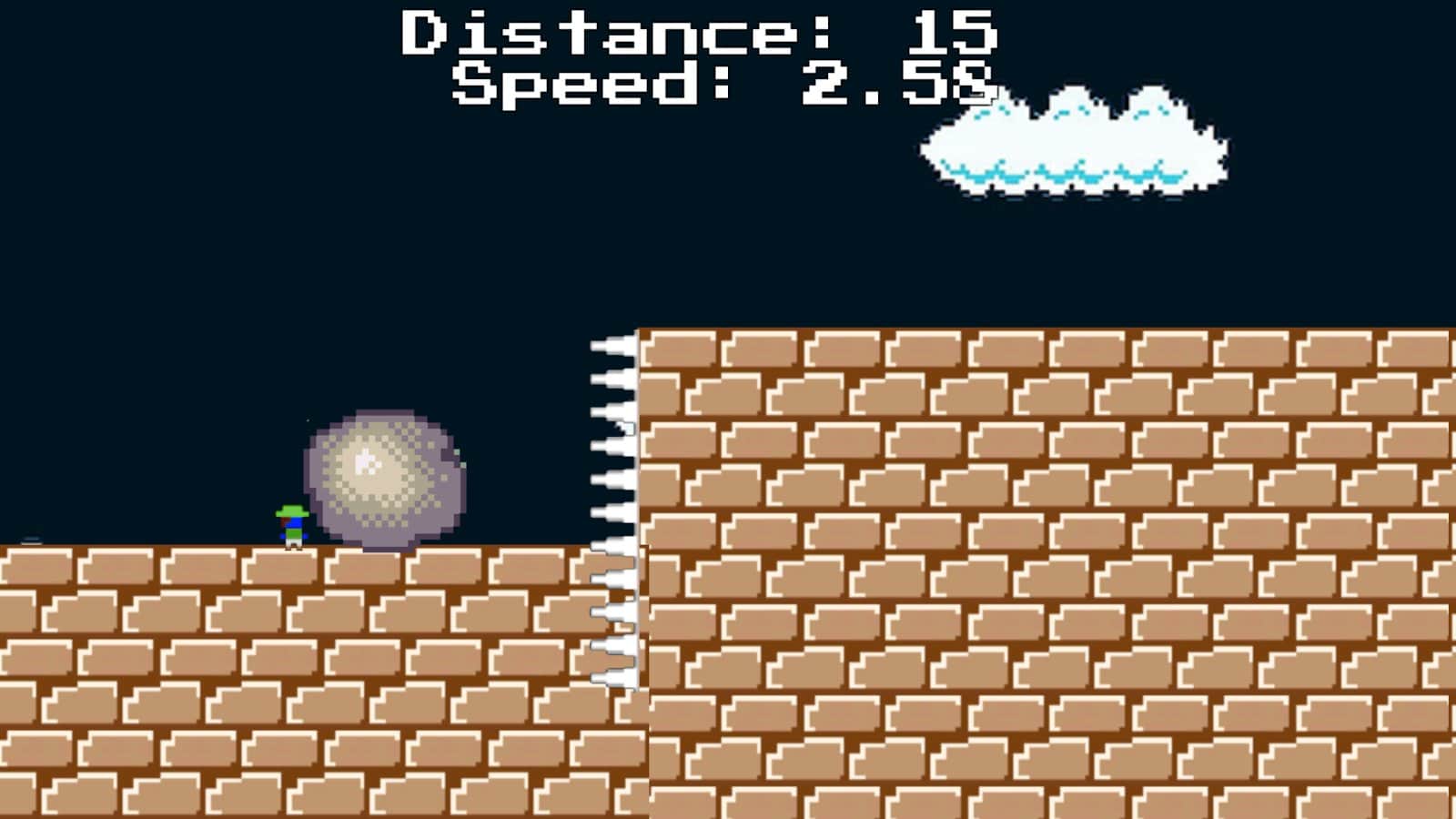 Trap Runner Adventure 2 – descubre un complejo juego flash que está hecho en gráficos retro de 8 bits. En este juego tomarás el control del personaje principal y lo guiarás a través de todas las pruebas. En el juego controlas a un héroe que salta y corre hacia adelante. Salta, evitando las muchas espinas y trampas que se encuentran en su camino. La velocidad de carrera del personaje aumentará con cada minuto que juegues y alcanzará el valor máximo. Para saltar más alto, mantén presionado la pantalla el mayor tiempo posible. Sé extremadamente cuidadoso y precavido porque los obstáculos pueden aparecer del suelo, si lo desaceleras un poco o caer del cielo.
