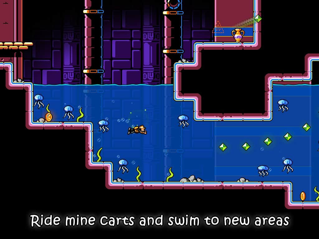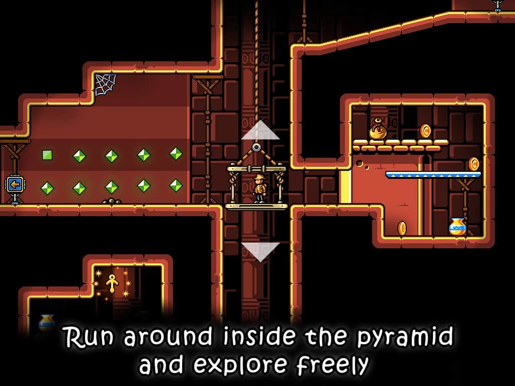 Traps n Gemstones - una aventura en Android, en la que te embarcarás en la búsqueda de tesoros antiguos. Eres un arqueólogo que ha tenido la oportunidad de investigar la antigua tumba de un faraón. Muévete por diversas habitaciones, nada a través de ríos subterráneos y busca cofres con tesoros. En tu camino te enfrentarás a enemigos con los que podrás lidiar usando tu látigo, explosivos y aguda mente.