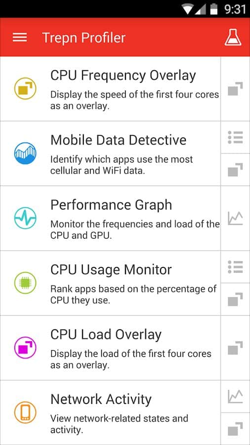 Para muchos será una sorpresa, pero es bien sabido que Qualqomm no solo se dedica a la producción de chips para dispositivos móviles. Hoy les presentamos la aplicación que Qualqomm creó para contabilizar los recursos del sistema y optimizar su funcionamiento. El programa evalúa el rendimiento del dispositivo y hace un seguimiento de qué procesos están cargados en el chip que probablemente drenen tu batería o consuman más datos, para lo cual en Trepn Profiler se encuentran seis herramientas diferentes, cada una de las cuales puedes ejecutar y observar su funcionamiento en tiempo real. El resultado del diagnóstico se presenta en forma de gráficos y tablas visuales.