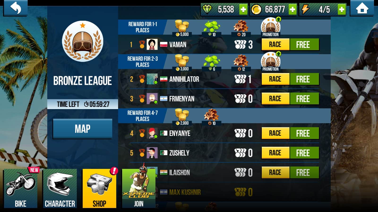 Trial Xtreme 4 Remasterizado - una versión actualizada del popular juego Trial Xtreme 4 para Android. Encontrarás más de 90 niveles extremos. Cada nivel es un desafío no solo para tus habilidades de ciclismo, sino también para tu pensamiento estratégico. Los gráficos más locos que hayas visto, combinados con niveles perfectamente diseñados, crean una experiencia increíble. Crea tu bicicleta, decorándola y mejorándola, y luego súbete y avanza hacia las victorias. Conviértete en el mejor corredor en el ranking mundial.
