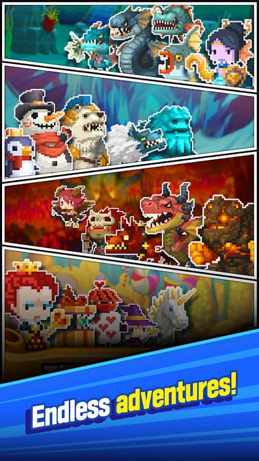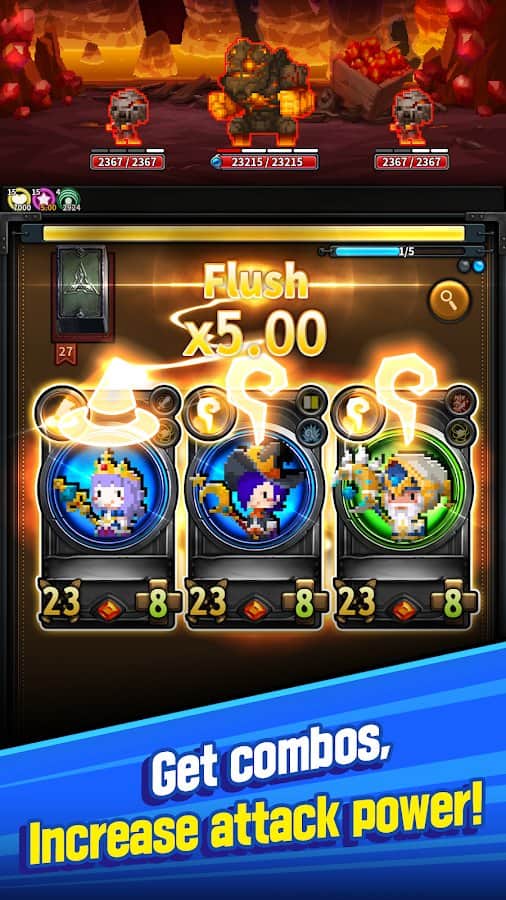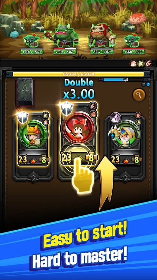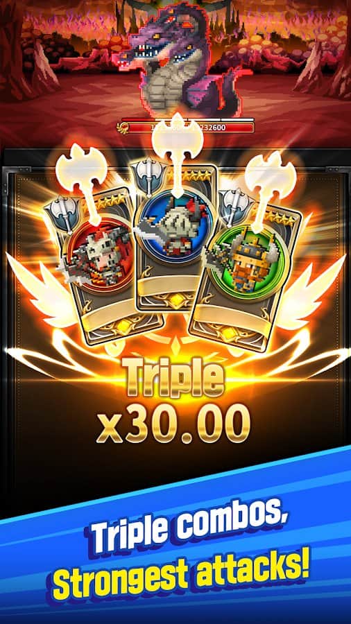 TripleFantasy – juego de cartas en Android donde salvarás al mundo de la destrucción. En este juego, serás transportado a un mundo fantástico gobernado por armas y habilidades. Eres el único que se ofreció como voluntario para defender el Reino de los terribles monstruos. Toma el control de un valiente guerrero y haz coincidir los ataques y aplica los golpes devastadores a los enemigos. Aplica tus habilidades y desarrolla tu estrategia de guerra. Los jugadores del juego apreciarán el diseño retro, muchos personajes pixelados, una amplia selección de cartas y numerosas habilidades.