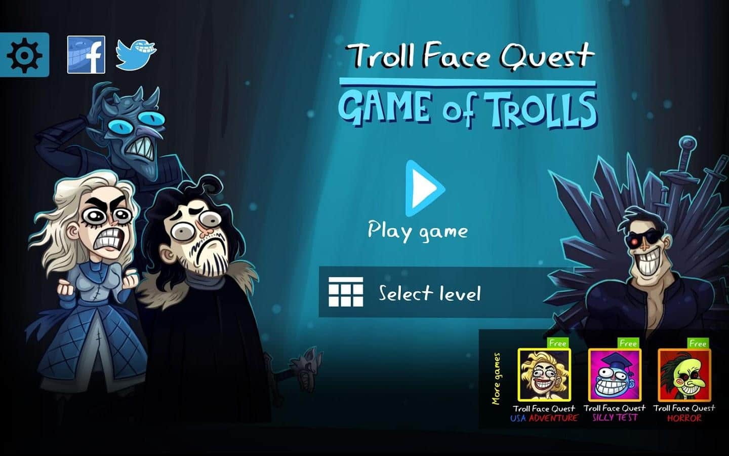 Troll Face Quest - una serie popular de aventuras cuya característica distintiva es una gran cantidad de humor, un elenco hilarante de personajes y docenas de situaciones divertidas. Troll Face Quest: Game of Trolls - una nueva parte de la franquicia, esta vez los desarrolladores han tomado una serie de temas populares de películas, cómics y cuentos de hadas, construyendo así una historia lógica que debes atravesar en aproximadamente una docena de mundos diferentes. Los desarrolladores mantuvieron la atmósfera general, los gráficos y los personajes.