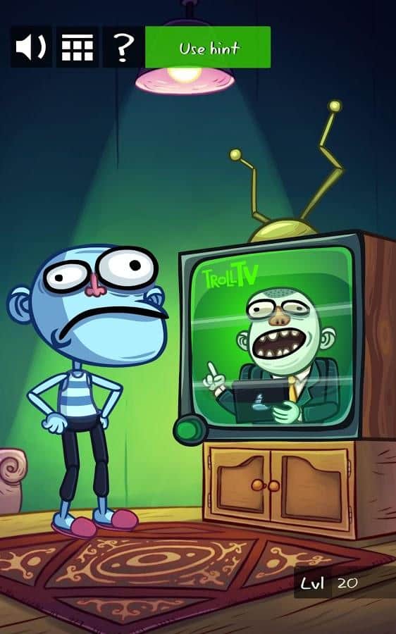 Troll Face Quest: Prueba Tonta – resuelve acertijos y desafíos difíciles en este juego para Android. En este juego, debes confiar en tu ingenio, lógica y pensar de manera diferente para resolver numerosas tareas. Toma la decisión correcta y supera un nivel tras otro. Usa diferentes objetos en el nivel y resuelve tareas no estándar y recuerda que la solución obvia no siempre es correcta. Piensa fuera de lo común y trata de superar a tus oponentes ascendiendo en la tabla de clasificación.