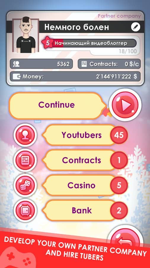 Los Youtubers - clicador que recién comienza y que no conocerá utubecom, pero en el proceso de hacer clic en la pantalla podrás ganar popularidad, ganar dinero y firmar nuevos contratos. También vale la pena señalar que aquí se aclaran de manera muy sarcástica algunos problemas y temas que tienen lugar en el YouTube moderno. Por ejemplo, tendrás que publicitar casinos en línea y esquemas piramidales, pero esto es solo un juego, ¡así que conviértete en más rico y popular!