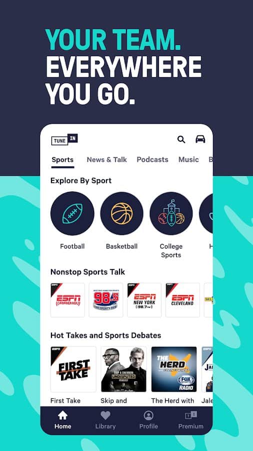 TuneIn Radio para dispositivos con la plataforma Android. Gran radio que puede funcionar en segundo plano mientras usas otras aplicaciones. Contiene más de 50 mil estaciones de radio, por lo que siempre es posible encontrar una estación favorita o adaptarse al estado de ánimo. Descarga, instala y escucha en cualquier momento y lugar buena música y todo tipo de noticias. Gran ánimo y buen día para ti están asegurados.