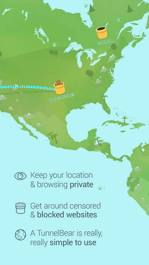 Tunnelbear es una VPN simple de usar para Android que te da acceso a contenido que está a la venta solo en el territorio de ciertos países. Para entregar la aplicación que no es para nuestro país, necesitas: