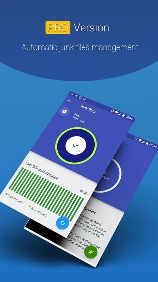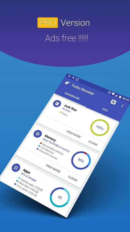 Turbo Booster – Mantén tu dispositivo limpio y esta aplicación te ayudará con esto. Contiene varias funciones útiles para cuidar de tu smartphone. Primero, podrás ver en tiempo real cuánto espacio de memoria está ocupado, cuánto puedes liberar, y así sucesivamente. Segundo, puedes configurar una lista en la que decidirás qué aplicaciones y carpetas limpiará esta aplicación. Si una aplicación es importante para ti, simplemente márcala y ya no será eliminada durante la limpieza.