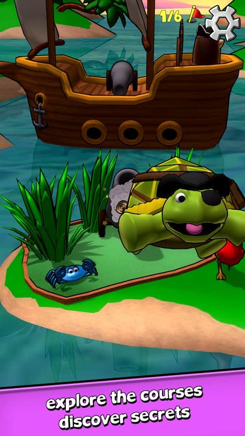 Turtle tumble – un increíble minigolf, donde la verdadera tortuga actúa como pelota. Nos enrollamos en posición fetal y adelante, a rodar por el campo. No será tan fácil llegar al codiciado hoyo. En cada nivel hay obstáculos dispersos que sin duda te molestarán, debes superarlos todos y salir victorioso en esta batalla. En el juego puedes ganar nuevos trajes para la tortuga. Cada nivel es único y diferente al anterior, en la etapa invernal los pingüinos te atormentarán y en la playa, los cangrejos malvados no te darán tregua. En otros niveles también te esperarán aventuras peligrosas.