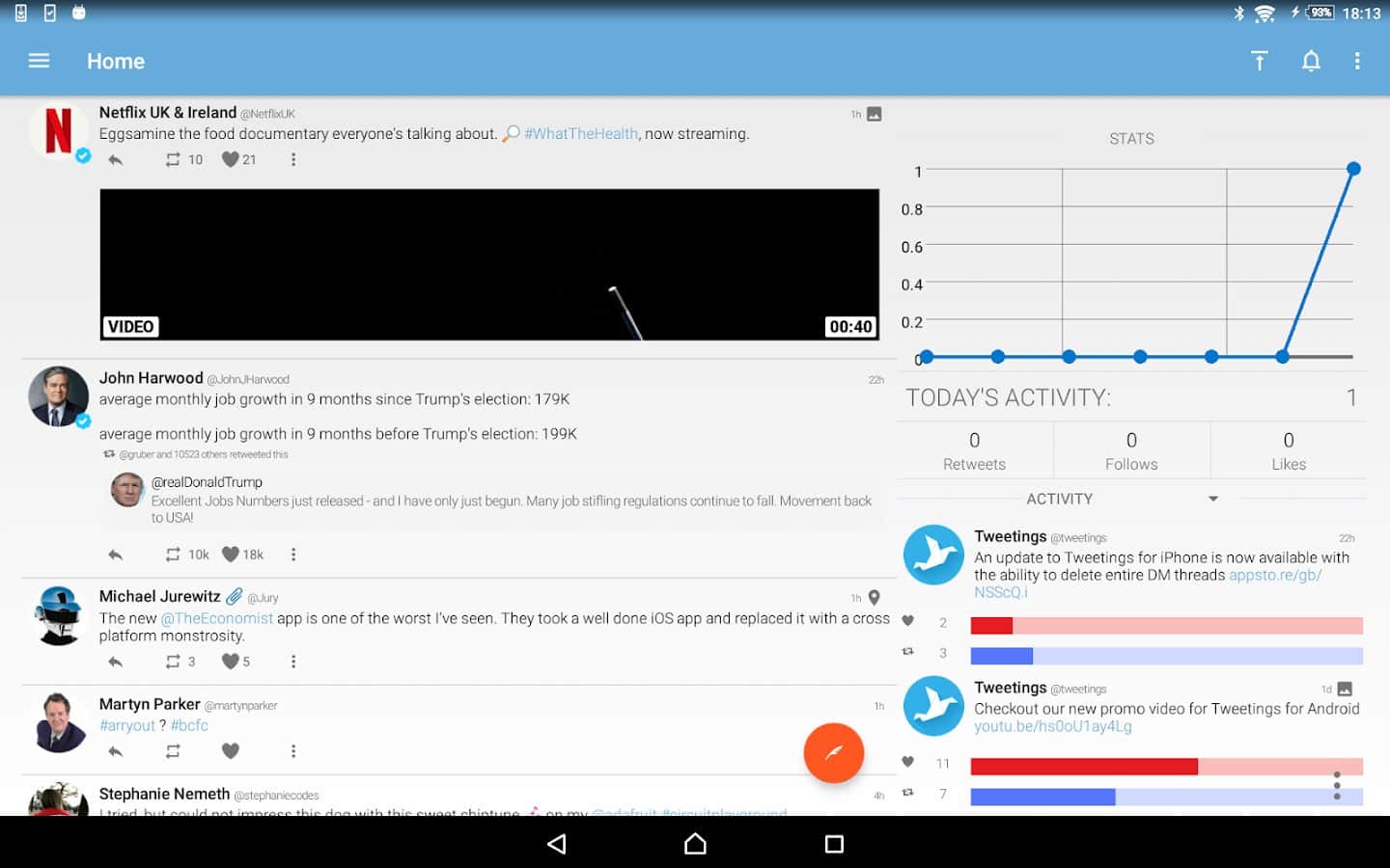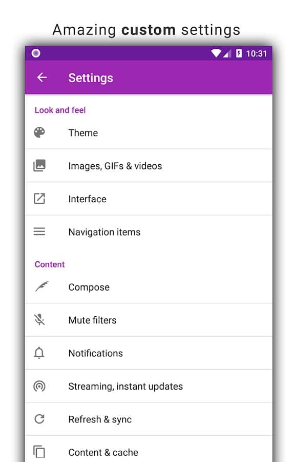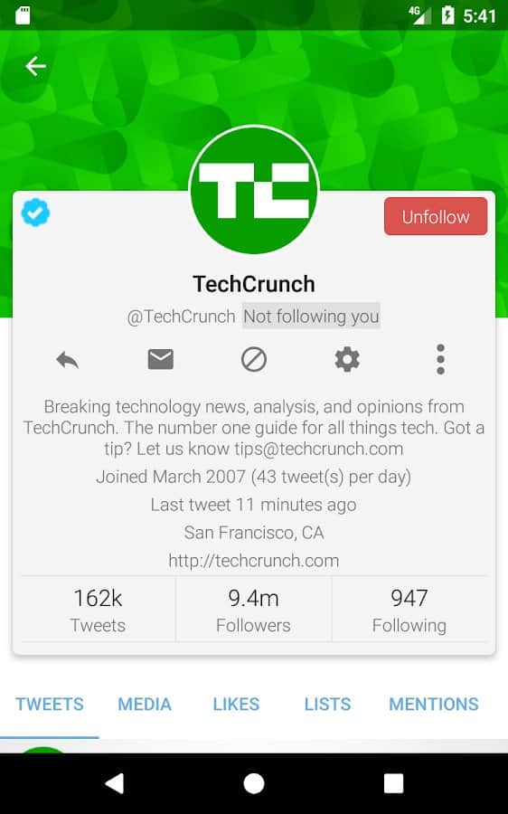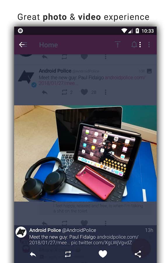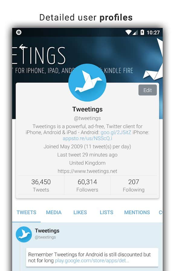 Tweetings para Twitter - Otra aplicación de Twitter para Android, tiene una vista hermosa. La aplicación admite temas, por lo que nunca te aburrirás de su apariencia. Puedes leer tus tweets favoritos y publicar los tuyos en uno de los clientes de Twitter más convenientes. El programa tiene un control fácil, en el que no tardarás mucho en entender.