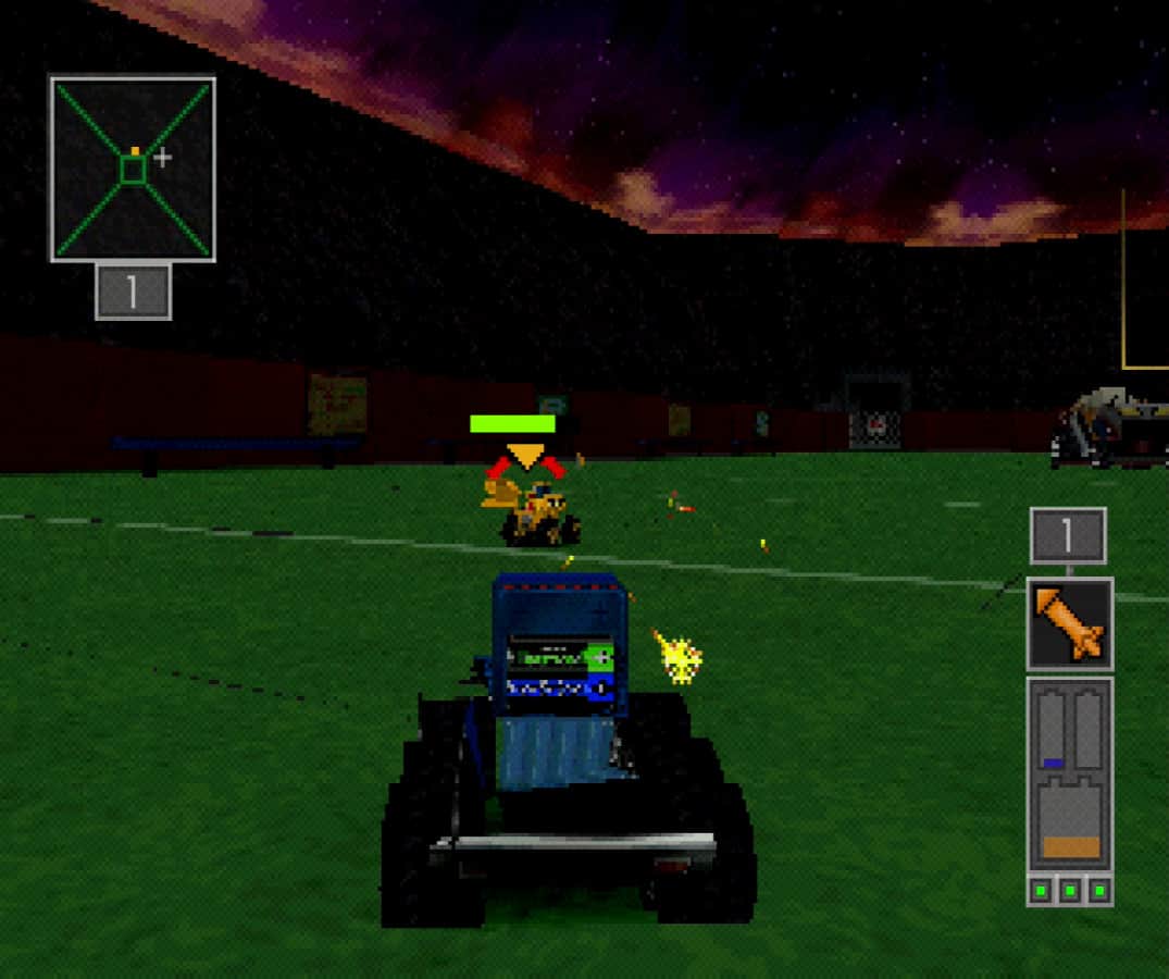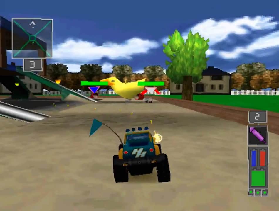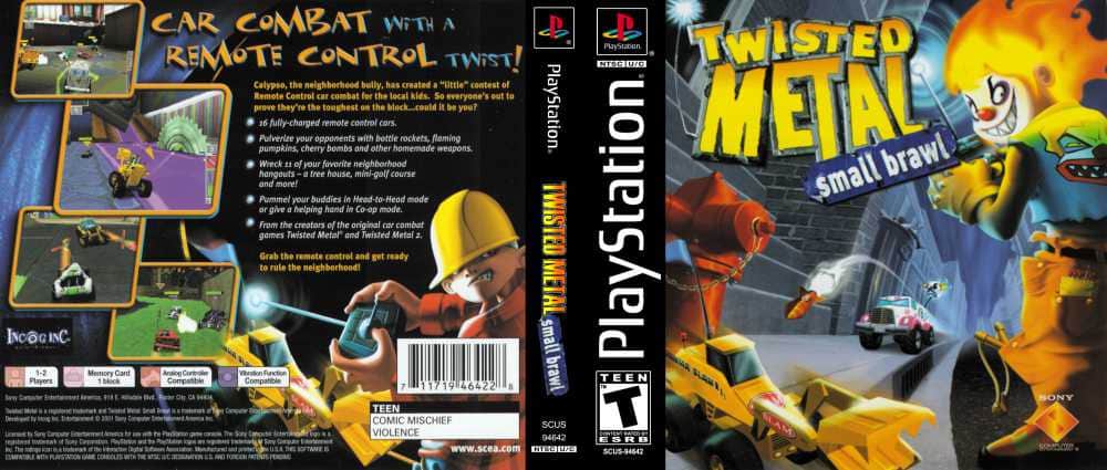 Twisted Metal Small Brawl - ¿Alguna vez has visto competencias de carreras en coches teledirigidos? ¡Participa activamente en ellas, experimentando lo que es deshacerse de todos los competidores en el camino hacia la línea de meta y la victoria! Lo más importante no es solo la victoria, sino también el número de oponentes destruidos, así que intenta ganar en cualquier caso. Además de 11 personajes regulares, podrás desbloquear otros héroes bonus, que te darán emoción. Aunque los participantes del torneo (Calypso, Sweet Tooth, Spectrum, Slam) son niños, ¡el proceso no será peor por eso!