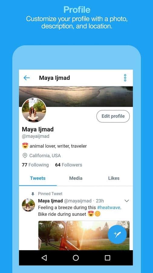 La aplicación Twitter Lite te permite ahorrar tu tráfico de Internet, proporcionando todas las mismas oportunidades ilimitadas para ver noticias frescas y relevantes, control de información empresarial, comunicación y propuestas de subvención. Configuración instantánea en tu teléfono, trabajo continuo en dos modos de red, configuración rápida de tu perfil, compartir y descargar archivos, tweets, alertas importantes: todas estas características del programa le otorgan enormes ventajas que están disponibles en la versión completa.