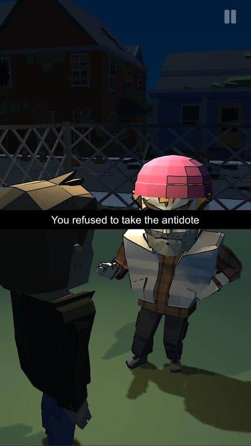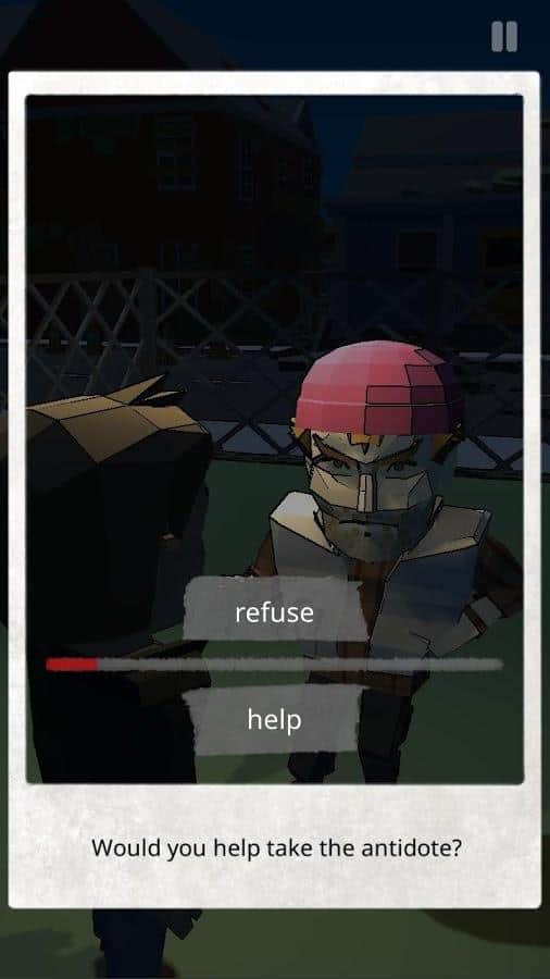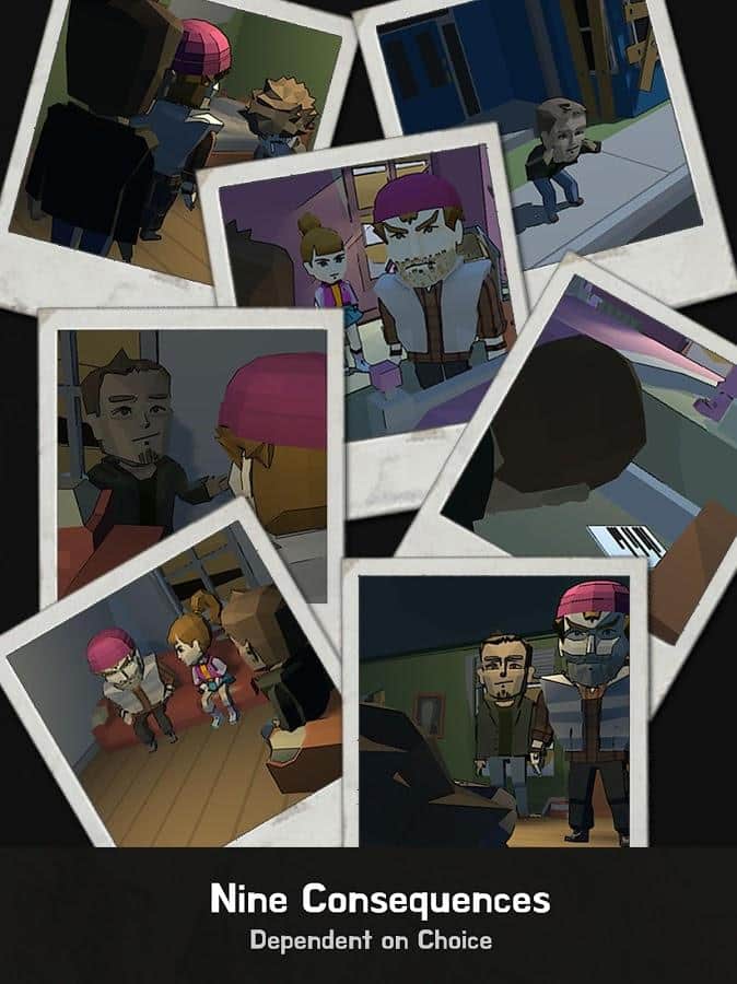Two Ways es un juego del género de película interactiva donde tienes que elegir decisiones morales difíciles. En esta dirección se han hecho muchos juegos diferentes, y esto fue muy bueno. En la historia, en el mundo hay un virus epidémico que convierte a las personas en zombis. La cantidad de medicamentos y antibióticos es limitada y difícil de encontrar. Juegas como el tío James, quien tiene una hija enferma. Frente a ti, en el juego, se plantean complejas elecciones morales: ¿deberías robar medicina de un vecino? ¿O es mejor encontrar un método más legítimo para su producción? Cada decisión tiene sus consecuencias. El juego siempre plantea preguntas difíciles y te hace reflexionar sobre si lo que haces en este caso es una buena elección. Supera todas las pruebas que te han preparado y descubre 9 finales diferentes con distintos destinos de los personajes principales que controlas.