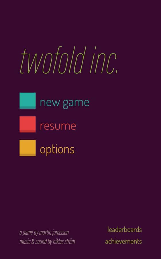 Ahora probablemente no todos recordarán qué tipo de juegos hace el estudio grapefrukt, pero hace unos años, durante el lanzamiento de su primer proyecto para la plataforma Android, llamado rymdkapsel, esta empresa estaba en boca de todos. rymdkapsel es una estrategia meditativa que ha ganado una popularidad increíble, pero en los últimos años el interés en el proyecto ha disminuido y la gente comenzó a olvidarla. Pero los chicos de grapefrukt games lanzaron su segundo juego llamado twofold inc. twofold inc. es un rompecabezas geométrico que combina elementos del cubo de Rubik, la serpiente y tres en raya. Al igual que el juego anterior, twofold inc. está hecho en un estilo minimalista con una jugabilidad simple pero divertida.
